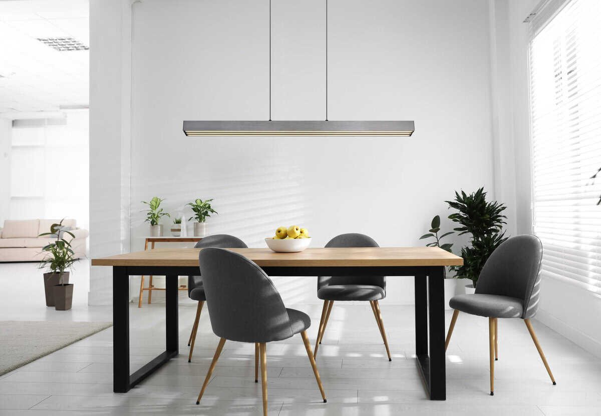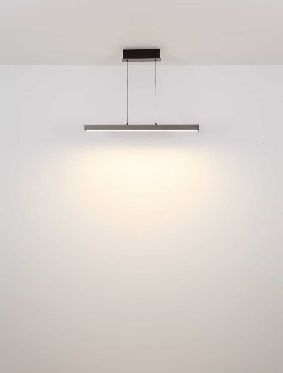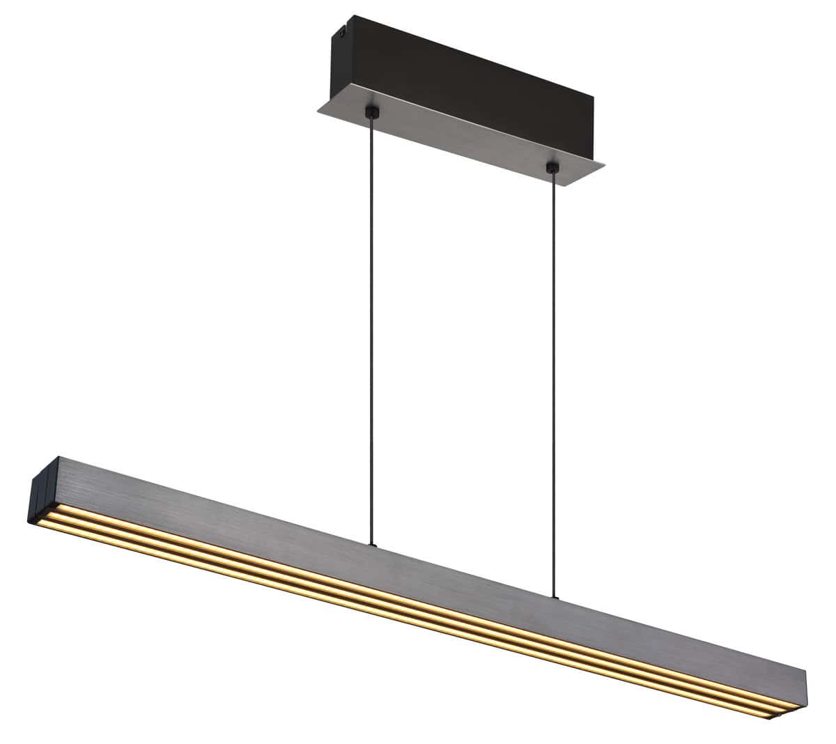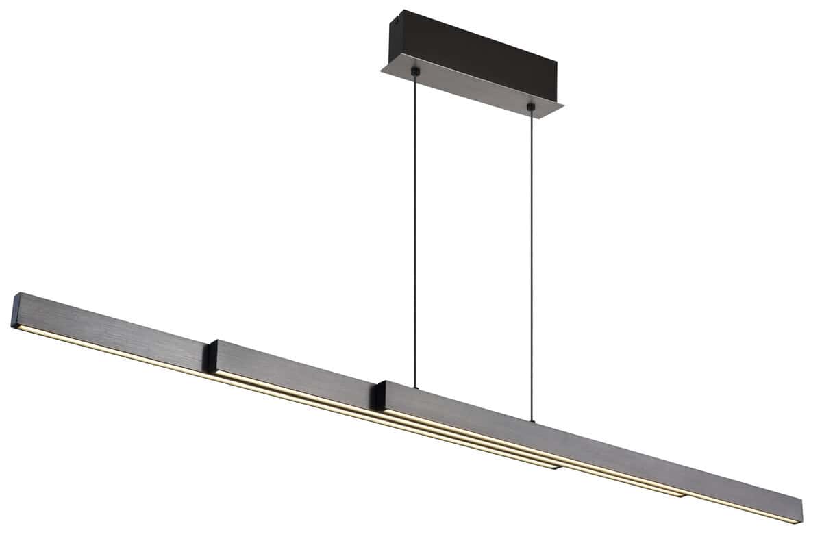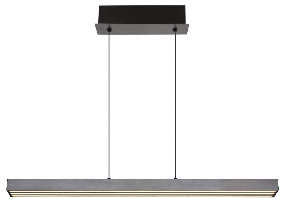 Sa modernom visećom lampom od brušenog tamnosivog aluminijuma možete unijeti pravi vrhunac u svoj dom. Aluminij je zadržan u elegantnom sivom tonu, a plastični element u izgledu opala osigurava ugodnu difuziju svjetlosti. Ova lampa ima inovativni sistem na dodir koji vam omogućava da podesite osvetljenje po svom ukusu. Beskonačni dimer na dodir vam omogućava da individualno podesite osvetljenost, a boje se mogu fiksirati. Zahvaljujući memorijskoj funkciji, svjetiljka pamti vaša zadnja podešavanja. Visina lampe je podesiva po visini i dužini i može se podesiti od 95 do 150 cm dužine i od 80 do 150 cm visine. Dolazi sa štedljivom LED sijalicom koja pruža jako osvjetljenje sa izvorom od 4000lm i izlazom od 2600lm i varijabilnom svjetlosnom temperaturom od 2700-6000K sa snagom od 39W i 230V. Udahnite novi život svojim sobama sa ovom svestranom visećom lampom i naručite je online već danas.