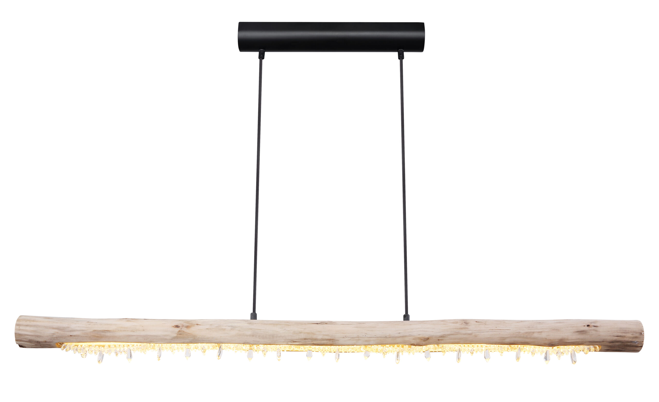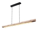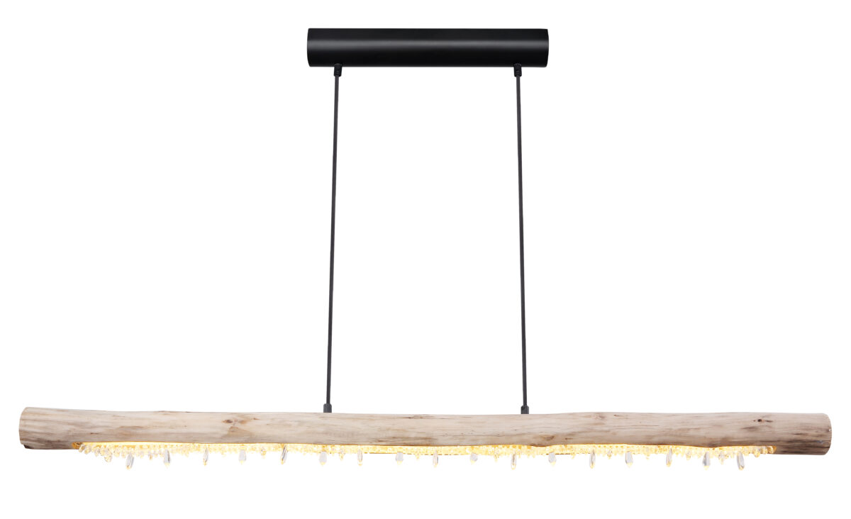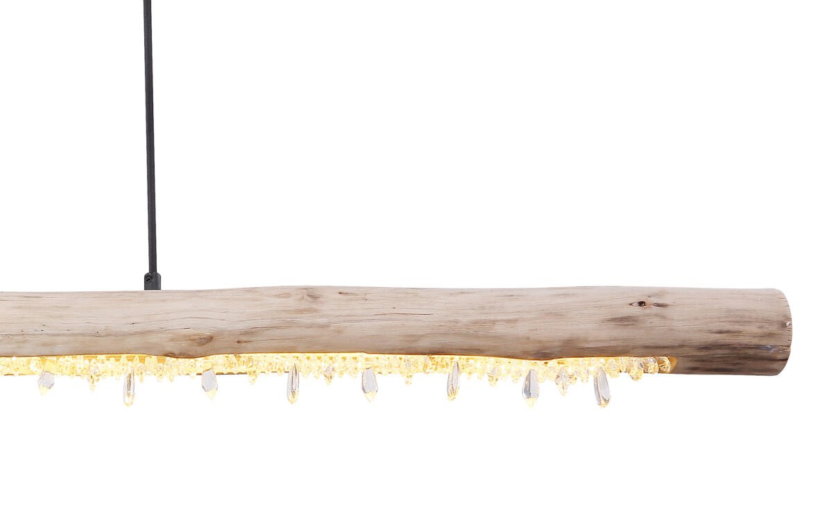 Sa ovom visećom lampom, modernost se susreće sa isprobanim. Na visećim crnim kablovima nalazi se drvena greda od prirodnog drveta. Prozirni akrilni kristali pričvršćeni na drvenu gredu privlače pažnju u vašoj sobi. Zahvaljujući uključenoj LED sijalici od 20 vati, ovo unutrašnje svjetlo nije samo vizualno privlačno za oči, jer pruža do 1030 lumena jakog svjetla s ugodnom, ugodno toplom bojom svjetlosti od 3000 Kelvina. Ovo unutrašnje svjetlo je odlično za vaš dnevni boravak i blagovaonicu.
