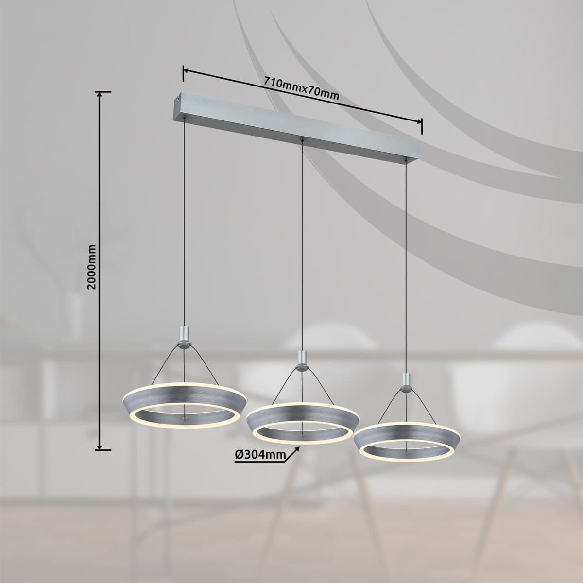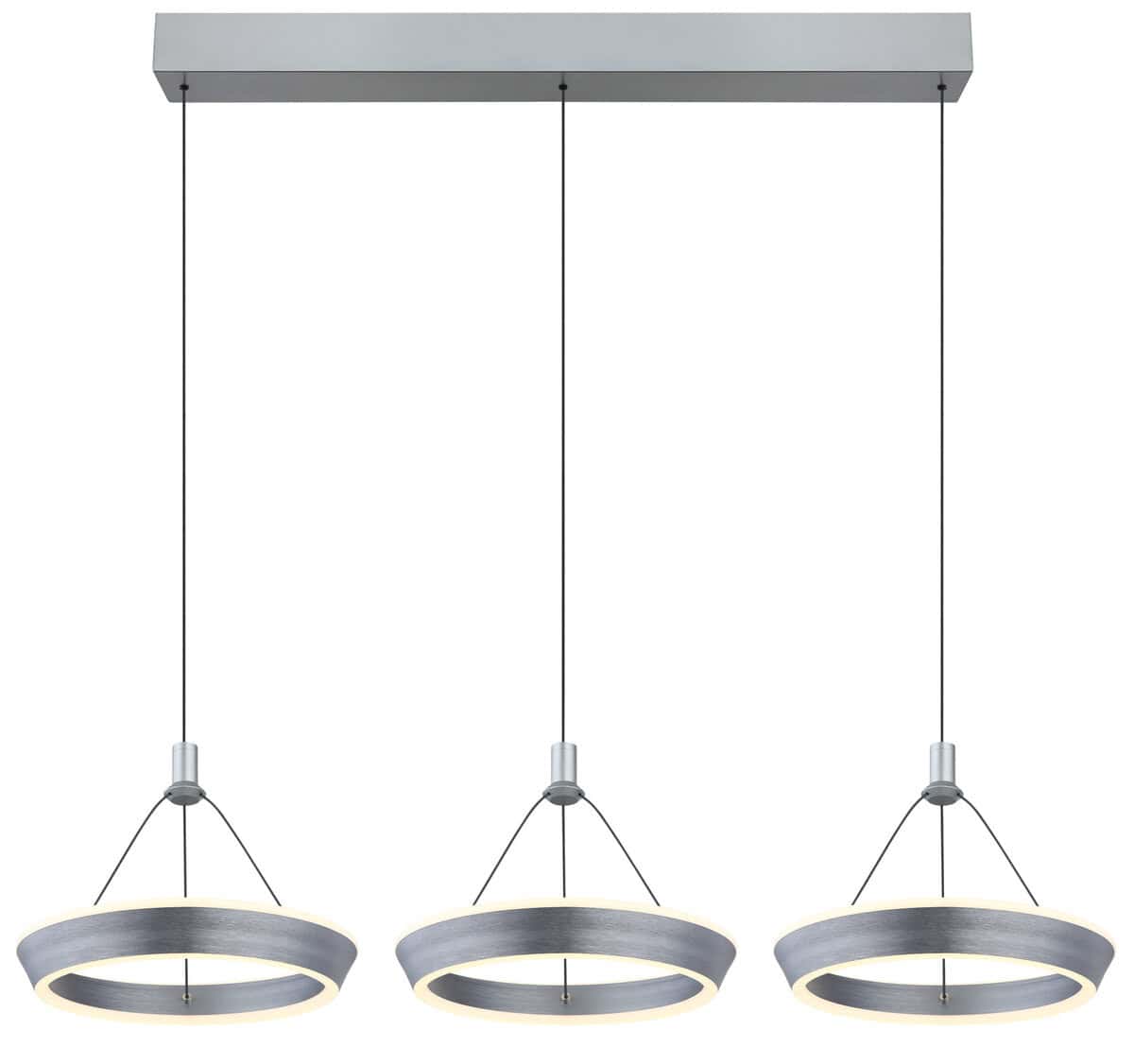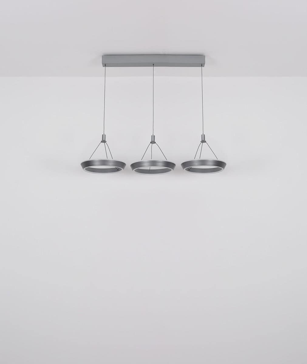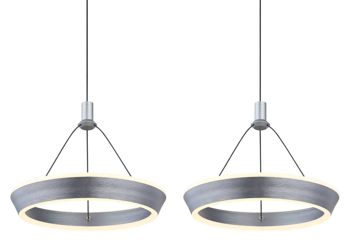Viseća lampa je izrađena od sivog mat metala i brušenog aluminijuma u boji titanijuma kao i opal silikona, raspoređenih u prečniku od 975 mm x 304 mm x 2000 mm (dužina x širina x visina). Lampa dolazi sa LED sijalicom snage 36 W i naponom od 230 V. Izvor svjetla ima svjetlinu od 4500 lm izvora i izlaznu snagu od 1000 lm pri temperaturi boje od 3000K. Ova viseća lampa je prava privlačnost za oči i idealna je za moderne životne prostore. Kombinacija sivog mat metala, brušenog titanijum aluminijuma i opal silikona daje lampi elegantan izgled. Podesiva visina vam omogućava da prilagodite svetiljku vašim potrebama. Svjetlo se može usmjeriti gore i dolje kako bi se stvorilo ugodno osvjetljenje. Svjetlina LED lampe pruža ugodno osvjetljenje koje prostoriju okupa toplim svjetlom. Sa LED lampom štedite energiju i štitite životnu sredinu.