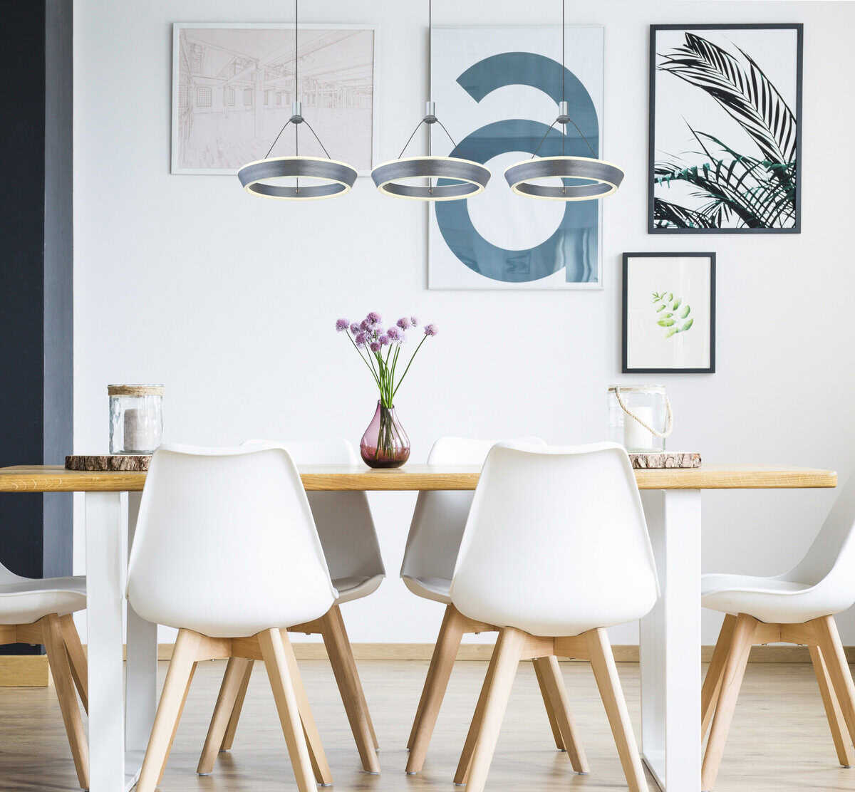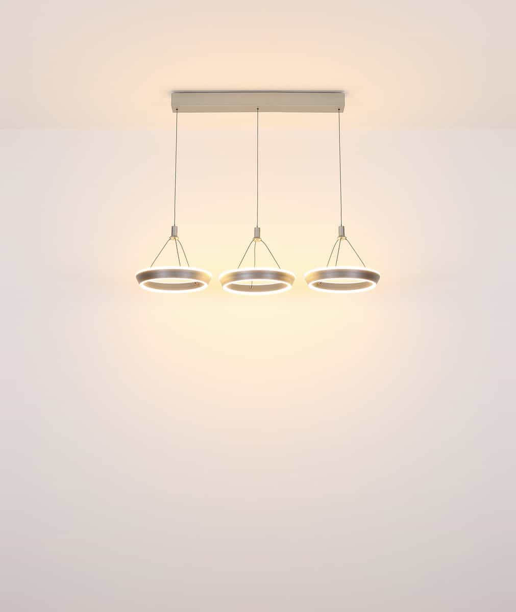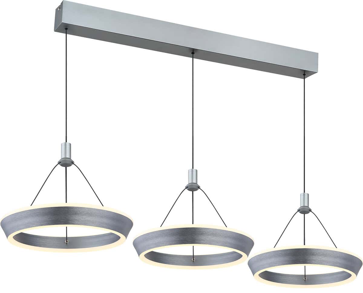Viseća lampa je izrađena od sivog mat metala i brušenog aluminijuma u boji titanijuma kao i opal silikona, raspoređenih u prečniku od 975 mm x 304 mm x 2000 mm (dužina x širina x visina). Lampa dolazi sa LED sijalicom snage 36 W i naponom od 230 V. Izvor svjetla ima svjetlinu od 4500 lm izvora i izlaznu snagu od 1000 lm pri temperaturi boje od 3000K. Ova viseća lampa je prava privlačnost za oči i idealna je za moderne životne prostore. Kombinacija sivog mat metala, brušenog titanijum aluminijuma i opal silikona daje lampi elegantan izgled. Podesiva visina vam omogućava da prilagodite svetiljku vašim potrebama. Svjetlo se može usmjeriti gore i dolje kako bi se stvorilo ugodno osvjetljenje. Svjetlina LED lampe pruža ugodno osvjetljenje koje prostoriju okupa toplim svjetlom. Sa LED lampom štedite energiju i štitite životnu sredinu.