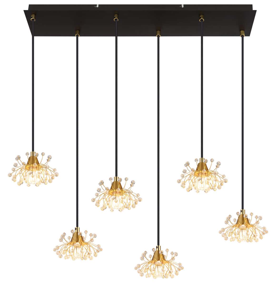 Viseća lampa FIORE impresionira sa šest sjenila u obliku cvijeta od kristala i elegantnom mješavinom crnog i metala zlatne boje. Idealno za koncepte luksuznih soba. Pogodno za G9 LED sijalice (ekskluzivno).