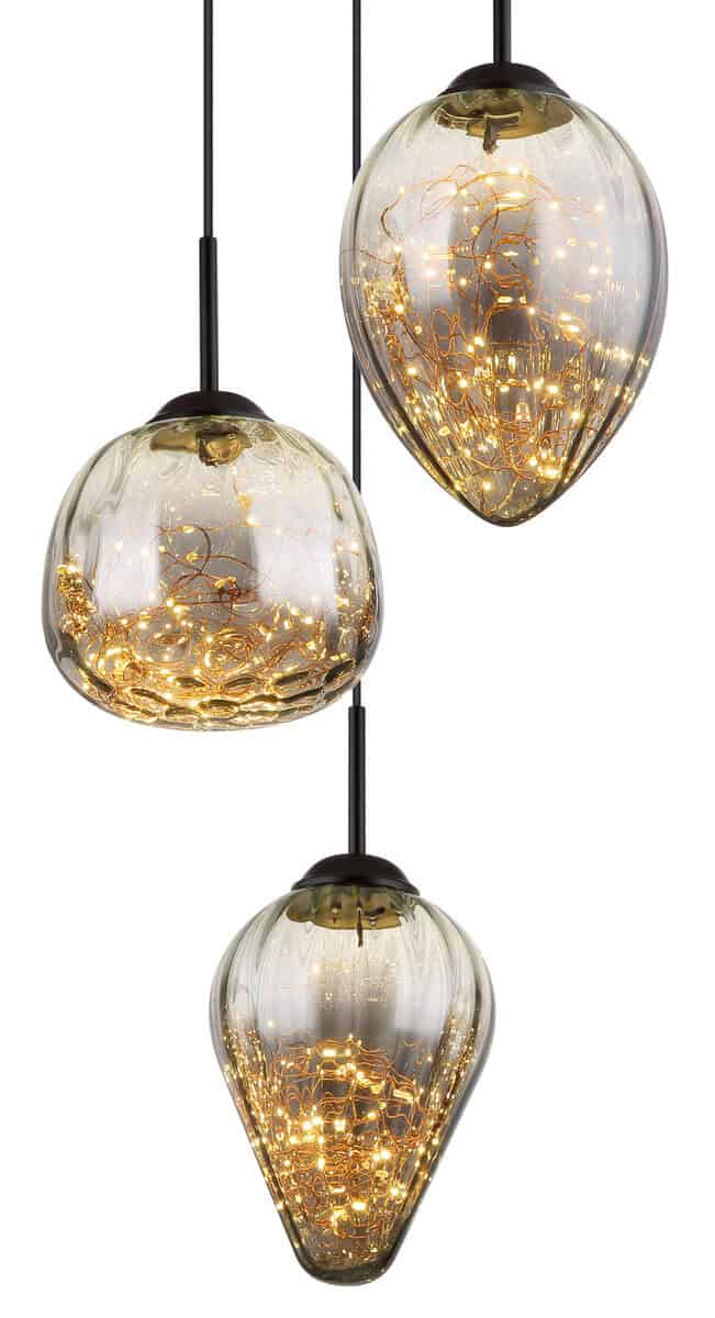 Elegantna visilica PENDANT LAMP METAL BLACK MATT impresionira atraktivnim dizajnom koji se sastoji od tri različita staklena oblika. Telo izrađeno od crnog mat metala savršeno se uklapa sa staklima boje dima, prozirnim staklima, koja lampi daju jedinstven izgled. Sa prečnikom od 400 mm i snagom od 24 W, ova svetiljka nudi jarko i atmosfersko osvetljenje sa toplom bojom svetlosti od 3000K. VISEĆA METALNA BLACK MATT idealna je za upotrebu u trpezariji, dnevnoj sobi ili hodniku i postavlja stilski akcent u vašem domu. Zahvaljujući bezvremenskom dizajnu i visokokvalitetnoj izradi, ova visilica sigurno će privući oči u vašoj sobi.