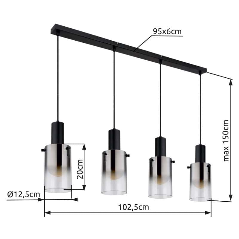 Doživite viseću lampu FLORENTINA koja oduzima dah i neka vaš dom zablista u novom sjaju! Crno mat metalno kućište u kombinaciji sa elementima u boji dima i prozirnim staklom stvara fascinantan izgled. PVC kabel u crnoj boji se skladno uklapa i omogućava individualno podešavanje visine. Sočiva ove lampe inspirišu suptilnim gradijentom boja, koji stvaraju jedinstveno svetlosno raspoloženje. Sa svojim izdašnim dimenzijama od 1025x125x1500mm, FLORENTINA impresivno privlači poglede. Imajte na umu da sijalice 4x E27 40W 230V nisu uključene. Uronite svoj dom u magično svjetlo uz visilicu FLORENTINA i stvorite neodoljivu atmosferu!