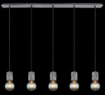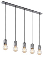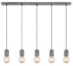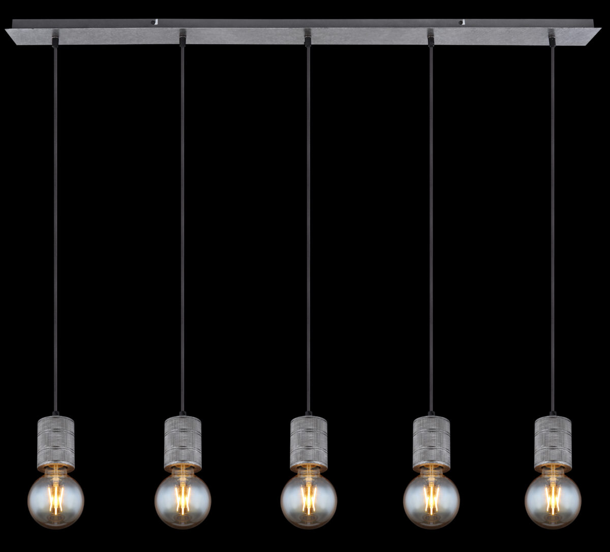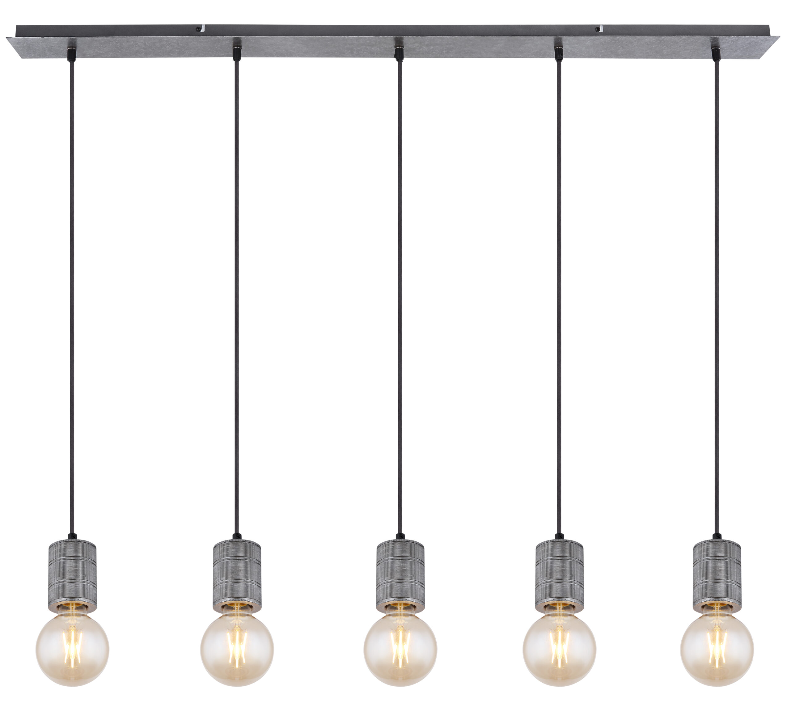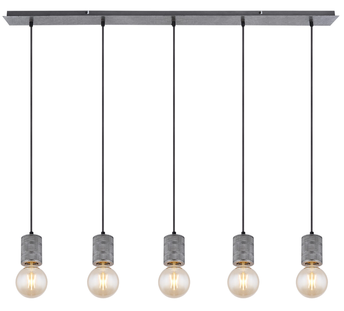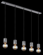 Ova viseća lampa iz Freddy serije je elegantan dodatak vašem interijeru. Na 115 cm dugoj metalnoj ploči srebrne boje raspoređeno je pet E27 okvira uokvirenih srebrno-metaliziranim aluminijumom, koji vise na kablovima udaljenim do 120 cm od plafona. One mogu biti opremljene i odgovarajućim lampama po vašem izboru, što vam daje mogućnost da individualno odredite boju i svjetlinu svjetla. Uz više članaka iz iste serije, možete upotpuniti cjelokupnu sliku u svoja četiri zida i pružiti moderan ambijent.