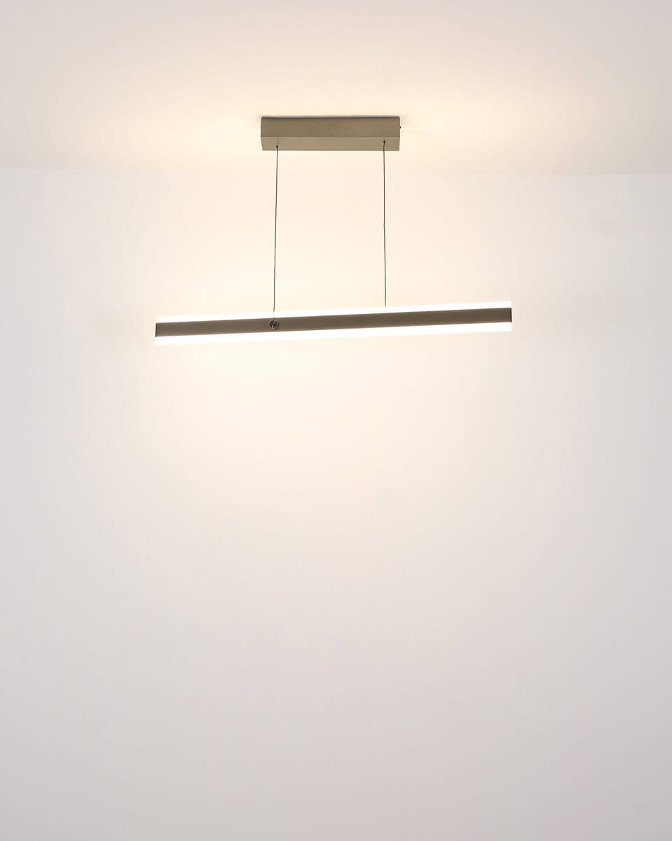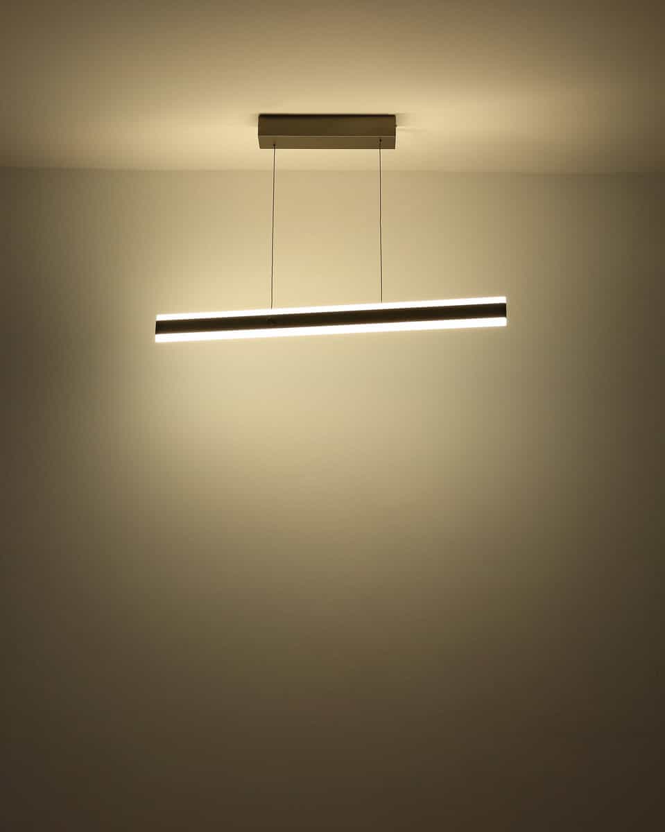 Naša visilica izrađena je od hromiranog metala i prozirnih akrilnih opalnih elemenata koji lijepo reflektiraju svjetlost. Kabl je izrađen od PVC-a i crne boje. Svetiljka ima mogućnost zatamnjivanja i može se kontrolisati preko više nivoa preko zidnog prekidača. Boje se mogu fiksirati, a lampa ima memorijsku funkciju. Obezbeđena je i noćna lampa. Visina lampe se može skratiti i daljinski upravljač je uključen. Trebat će vam 2 AAA baterije za daljinski upravljač. Viseća lampa je dimenzija DxŠxV: 960x75x1700mm i sastoji se od prstena prečnika 960 mm. Svetiljku napaja LED dioda snage 36W i napona 230V. Izvor svjetlosti ima svjetlinu od 523-4176lm izvora i izlaznu svjetlinu od 333-1976lm. Temperatura boje može se podesiti između 2700K i 6000K. Naša visilica je prava privlačnost za oči i bit će vrhunac u svakoj prostoriji. Svojom jedinstvenom kombinacijom modernog dizajna i visokokvalitetnih materijala, zajamčeno će privući oči u vašem domu.