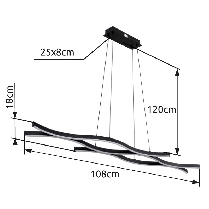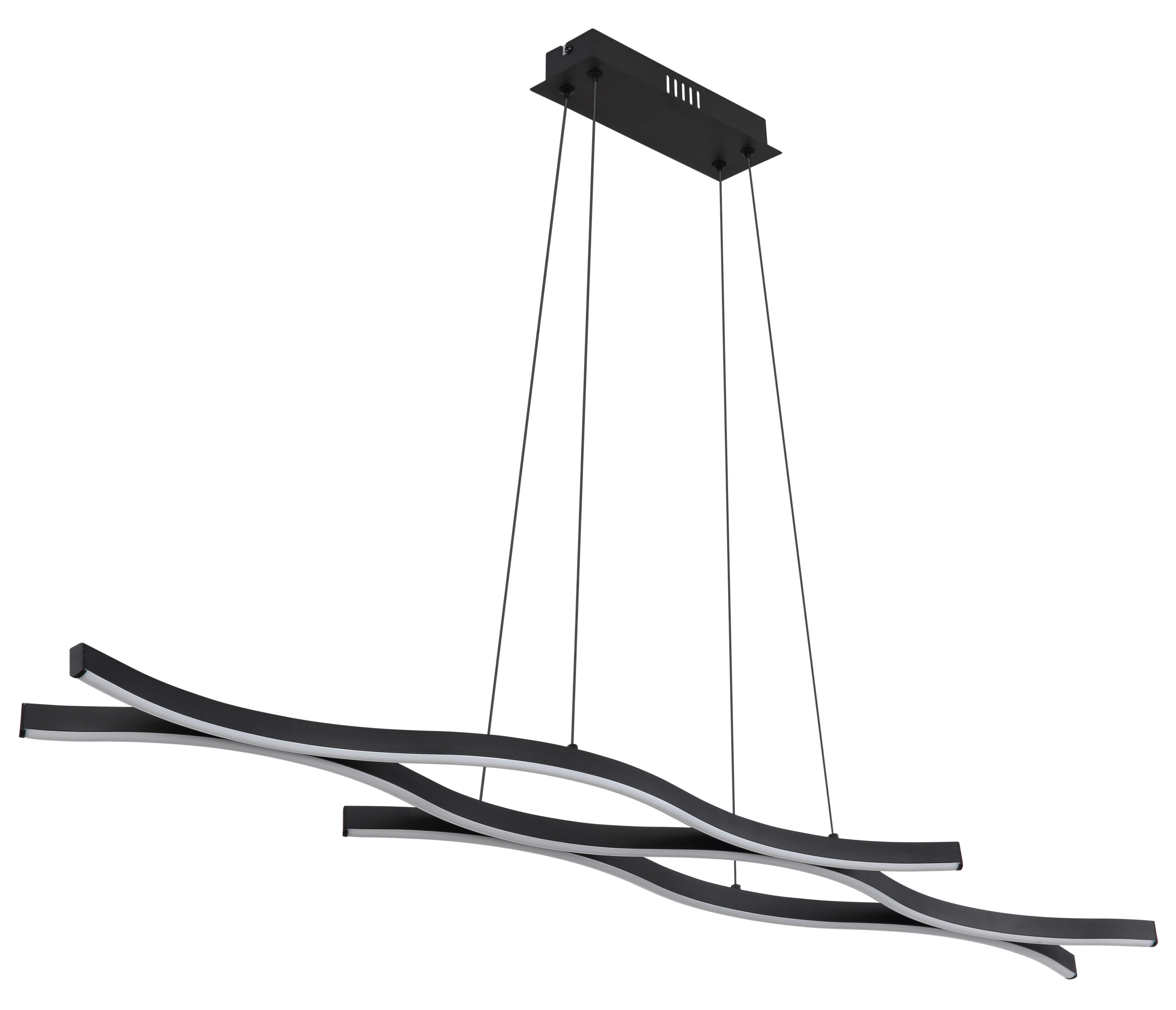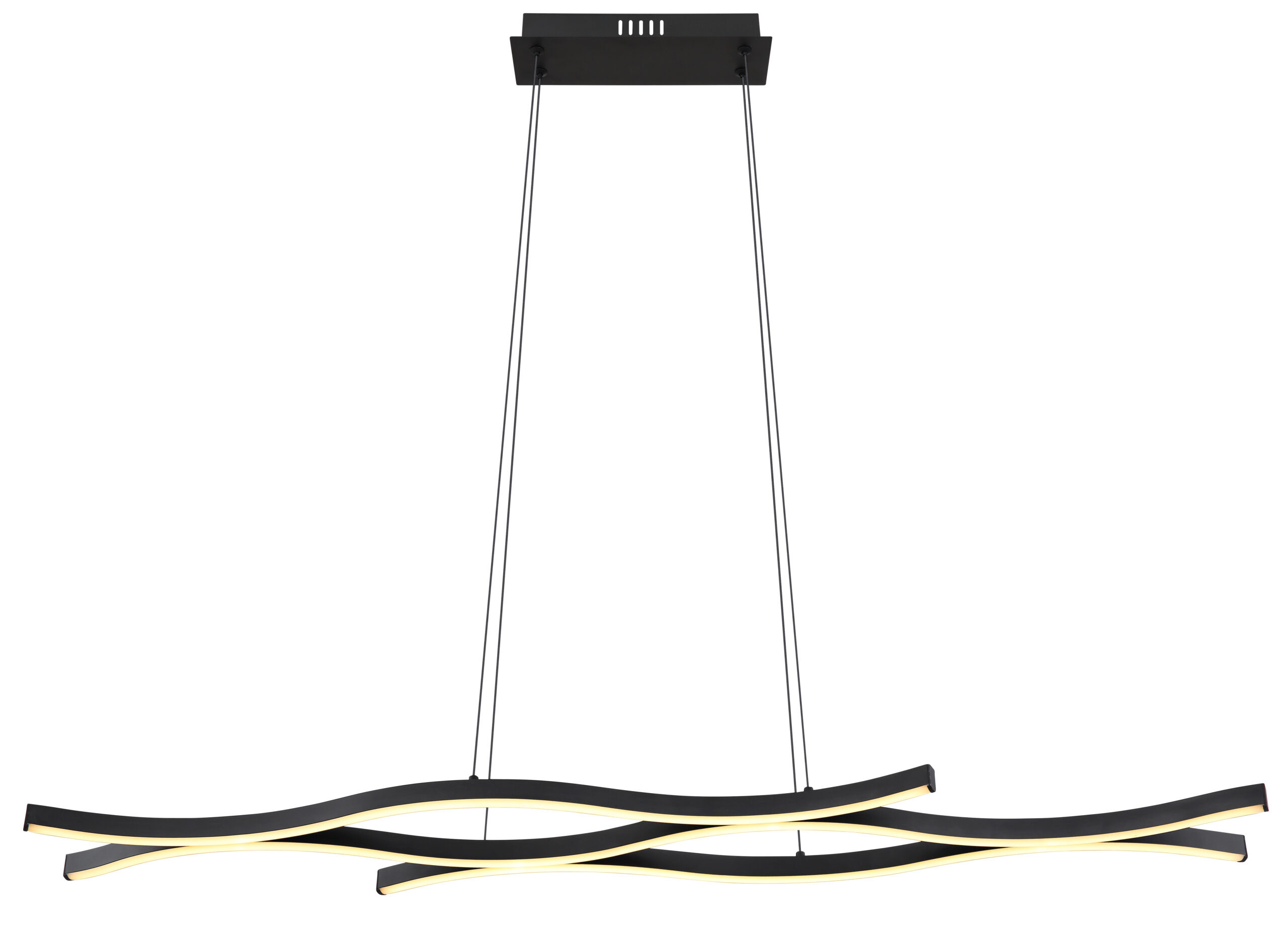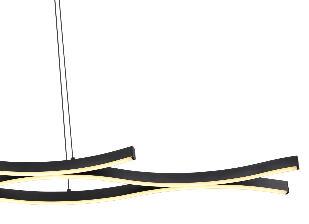 Viseća lampa serije GERONIMO u crnom mat dizajnu izrađena je od metala i aluminijuma u crnoj mat završnici i plastike u boji opala. PVC kabel je crne boje, a visina lampe je podesiva. Sa veličinom DxŠxV 1080x180x1200mm i LED snagom od 35W i 230V, lampa proizvodi intenzitet svjetlosti od 3570lm Izvor pri temperaturi boje od 3000K.
