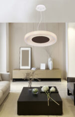 Ova okrugla visilica GOFFI (Ø50cm) nudi kombinaciju bijelog metala, opalnog akrilnog stakla i smeđeg metala u sredini lampe. Uz uključenu LED sijalicu od 40 vati, ova unutrašnja svjetiljka pruža do 2400 lumena jakog svjetla. Upravljana daljinskim upravljačem, boja svjetla ove rasvjete s mogućnošću zatamnjivanja može se podesiti i fiksirati od toplo-bijele 3000 Kelvina do hladne 6000 Kelvina. Osim toga, ovo unutrašnje svjetlo ima funkciju memorije i noćnog svjetla. Ova viseća lampa koja viri 150 cm u prostoriju može se divno uklopiti u vaš spavaći i dnevni boravak. Uz ostale modele iz ove serije možete dodatno uljepšati vaše područje života.