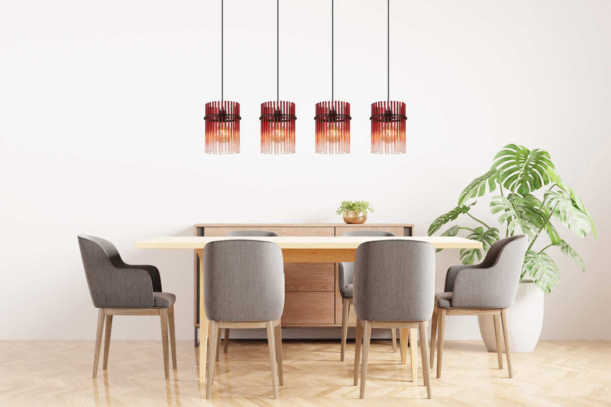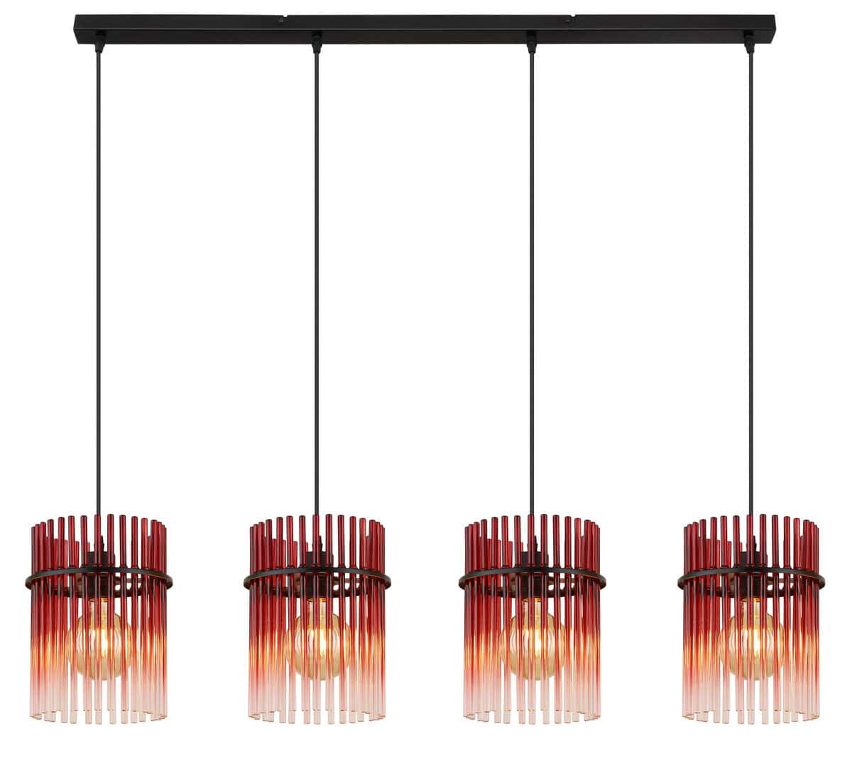 Otkrijte elegantnu viseću lampu iz GORLEY-a, jedinstveno rješenje za vašu rasvjetu. Ova izdužena visilica ima četiri vješalice postavljene na ravnu šinu. Sjenila su napravljena od staklenih šipki koje se vijugaju u okruglom obliku. Tijelo je izrađeno od mat crnog metala i nudi atraktivnu bazu. Nijansa se sastoji od staklenih štapića u boji kupine i crvene boje koji glatko prolaze kroz tijelo. Upotreba staklenih štapića u živo plavoj boji čini ovu lampu pravom predstavom u vašoj sobi. Viseća lampa GORLEY je odličan izbor za moderne dnevne sobe, kancelarije ili čak za elegantan ambijent. Savršen je za moderan dizajn i unosi jedinstven dodir u vašu sobu.