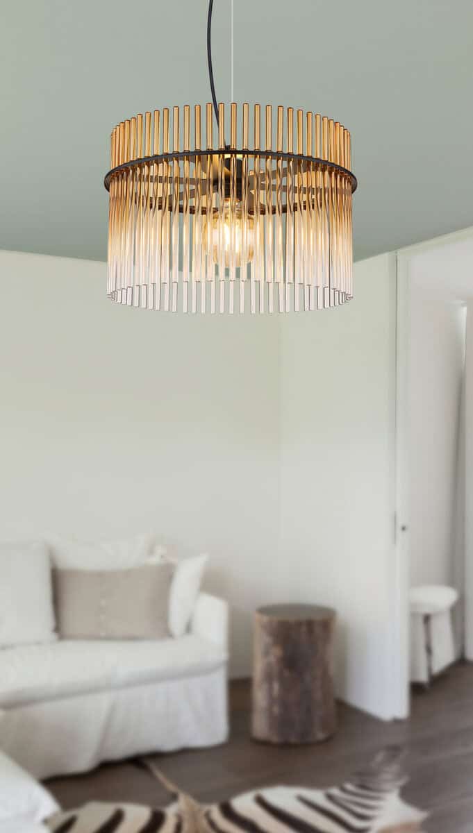 Viseća lampa GORLEY impresionira svojim bezvremenskim dizajnom i profinjenom estetikom. Njegovo okruglo tijelo napravljeno od mat, crnog metala nosi jednako okruglu nijansu jantarnih i prozirnih staklenih šipki, koje su vješto raspoređene. Ovaj dizajn stvara fascinantnu igru svjetla i stvara toplu atmosferu u prostoriji. Viseća lampa GORLEY idealna je za različite koncepte prostorija i postavlja stilske akcente u dnevnim sobama, trpezarijama ili hodnicima. Svojom visokokvalitetnom izradom i promišljenim dizajnom nije samo funkcionalan izvor svjetlosti, već i dekorativni element koji oplemenjuje prostoriju i obogaćuje ambijent. Zahvaljujući skladnoj kombinaciji mat metala i prozirnih staklenih šipki, GORLEY visilica se neprimjetno uklapa u moderne stilove interijera i dodaje elegantan štih svakoj prostoriji. Ne samo da pruža efektivno osvjetljenje, već i estetski naglasak koji sa stilom upotpunjuje vaš životni prostor.