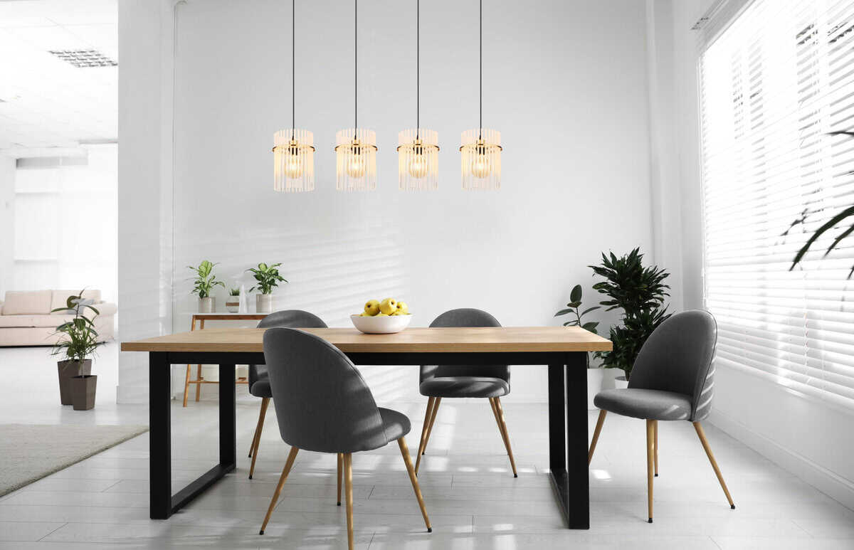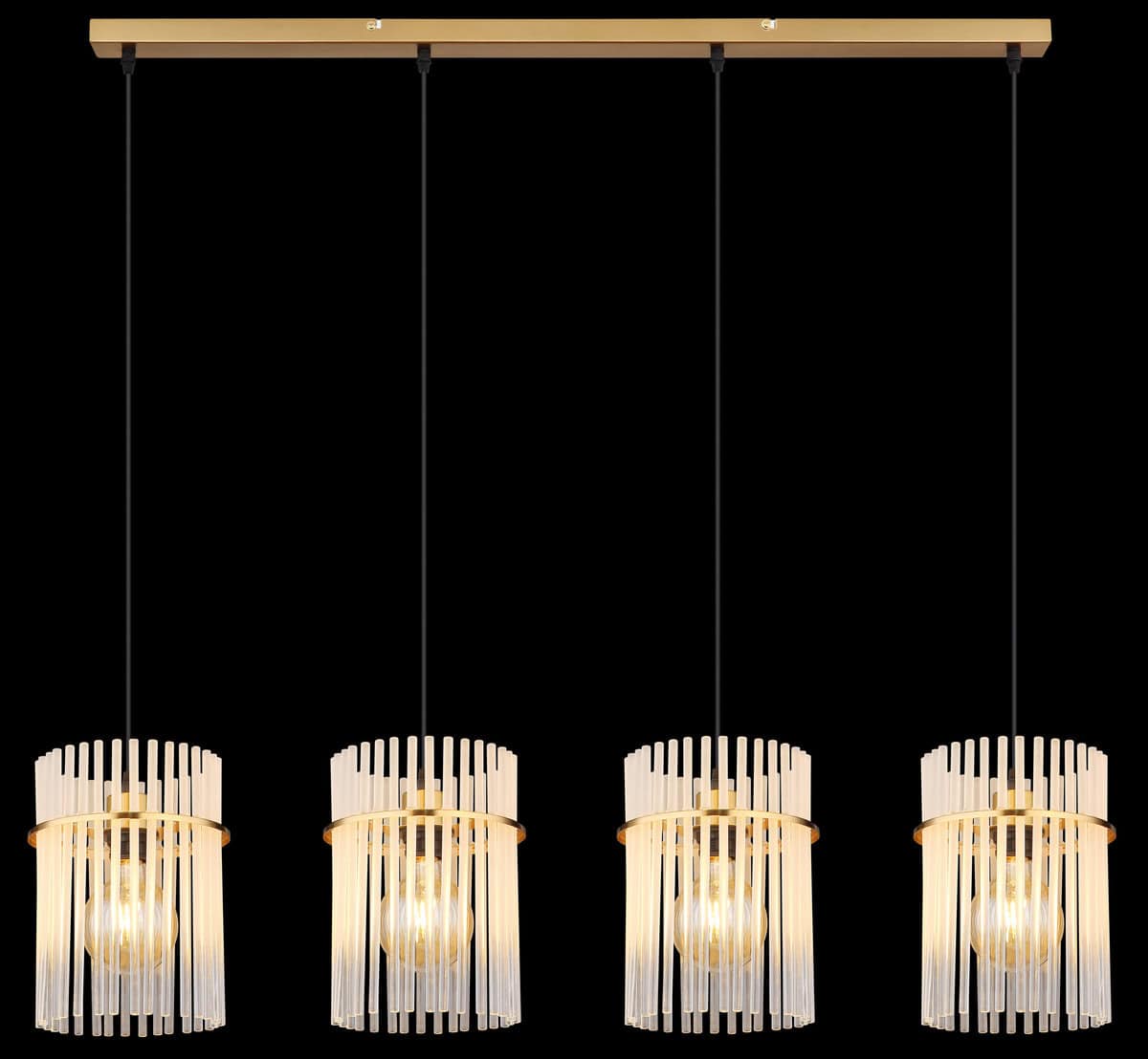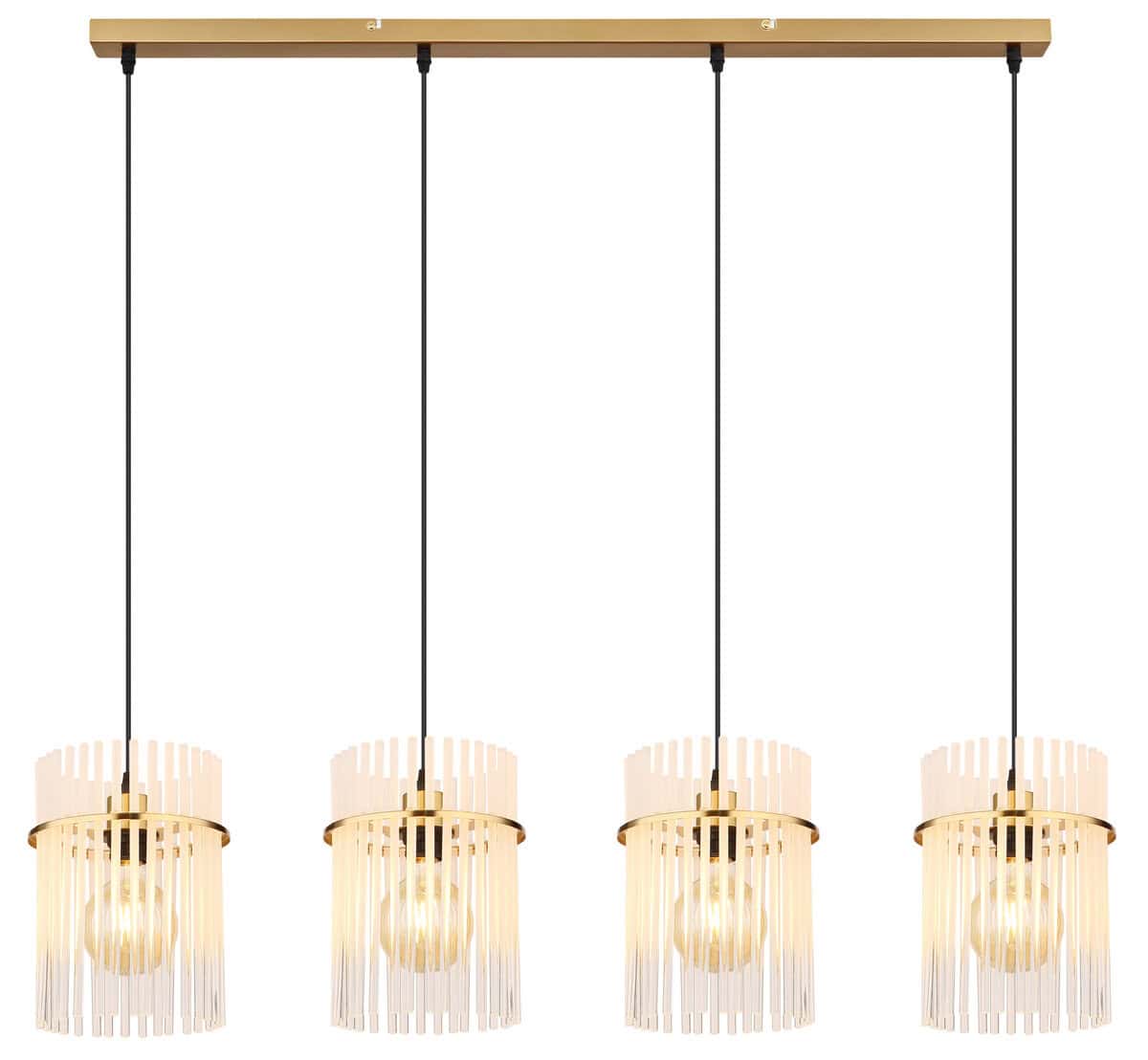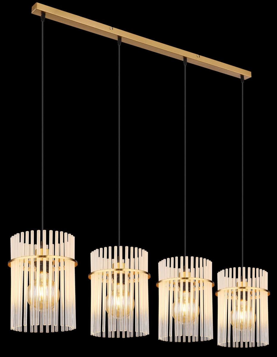 GORLEY visilica je elegantno i moderno rješenje za rasvjetu za vaš dom. Sa svojom ravnom stazom i četiri viseća svjetla, postavlja stilske akcente i pruža ugodno osvjetljenje. Mat metalno kućište zlatne boje GORLEY viseće lampe daje joj luksuzan izgled i savršeno se uklapa u moderne stilove enterijera. Sjenila su napravljena od vješto izrađenih staklenih šipki koje stvaraju opal i jasan efekat. Gradijentni dizajn stvara fascinantnu igru svjetlosti koja uranja prostoriju u ugodan ambijent. Sa dužinom od 1100 mm i širinom od 200 mm, GORLEY visilica nudi dovoljno svjetla i istovremeno izgleda filigransko i elegantno. Posebno je prikladan za osvjetljavanje trpezarijskih stolova, kuhinjskih ostrva ili stolova u dnevnim boravcima. Dajte svom domu dašak luksuza uz GORLEY visilicu i uživajte u posebnom ambijentu rasvjete koji stvara ova izvanredna visilica.
