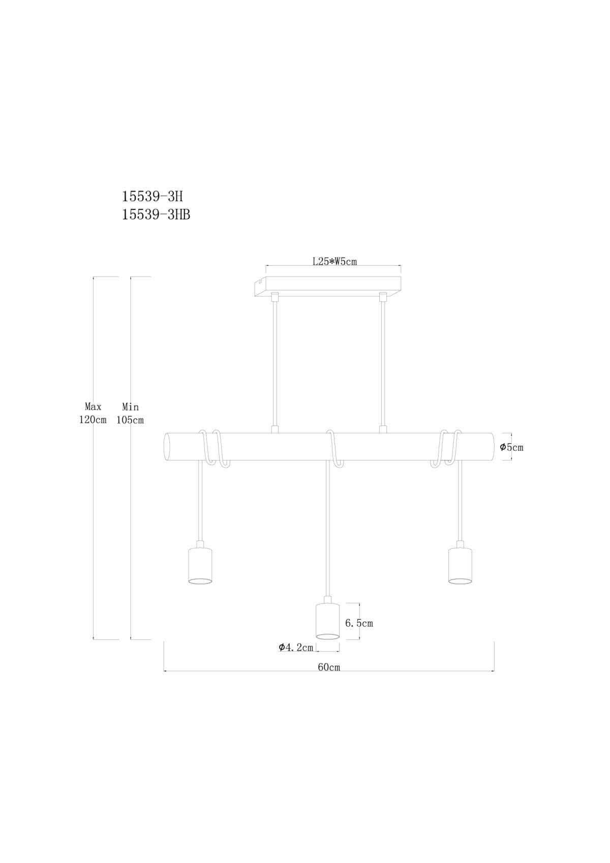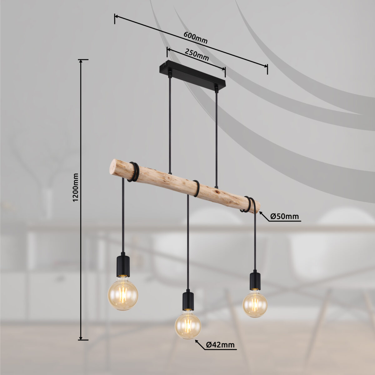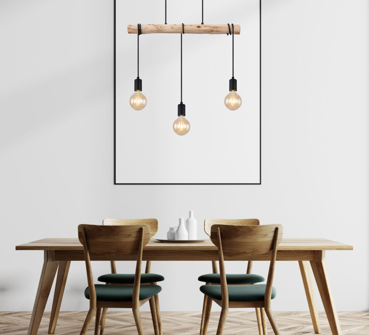 Ova dekorativna viseća lampa impresionira modernim dizajnom i postaje centralna tačka vašeg dnevnog boravka. Viseća lampa se sastoji od četiri E27 grla koja vise sa plafona na crnim kablovima. Visina privjesne lampe se može podesiti uz pomoć drvene šipke, ukupno 120 cm jednostavnim umotavanjem. E27 grla vam omogućavaju da koristite sijalice po vašem izboru do maksimalne snage od 60 vati. Sa ostalim modelima ove serije možete uljepšati svoj dnevni boravak.