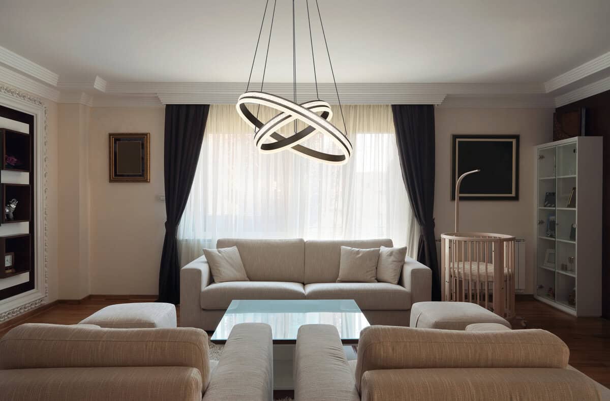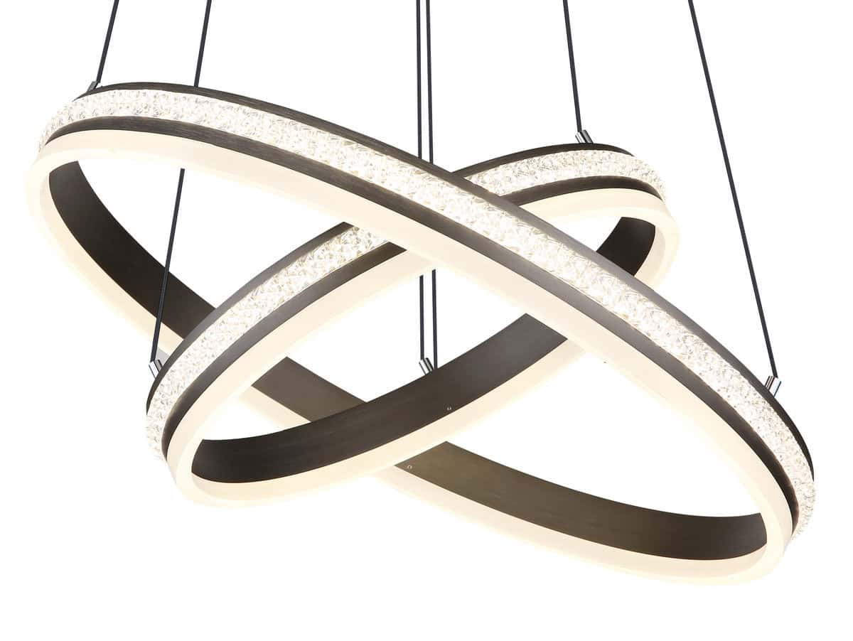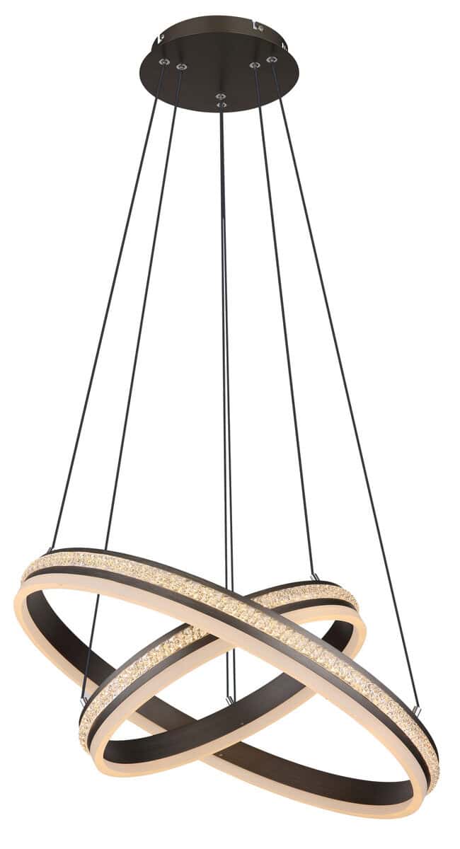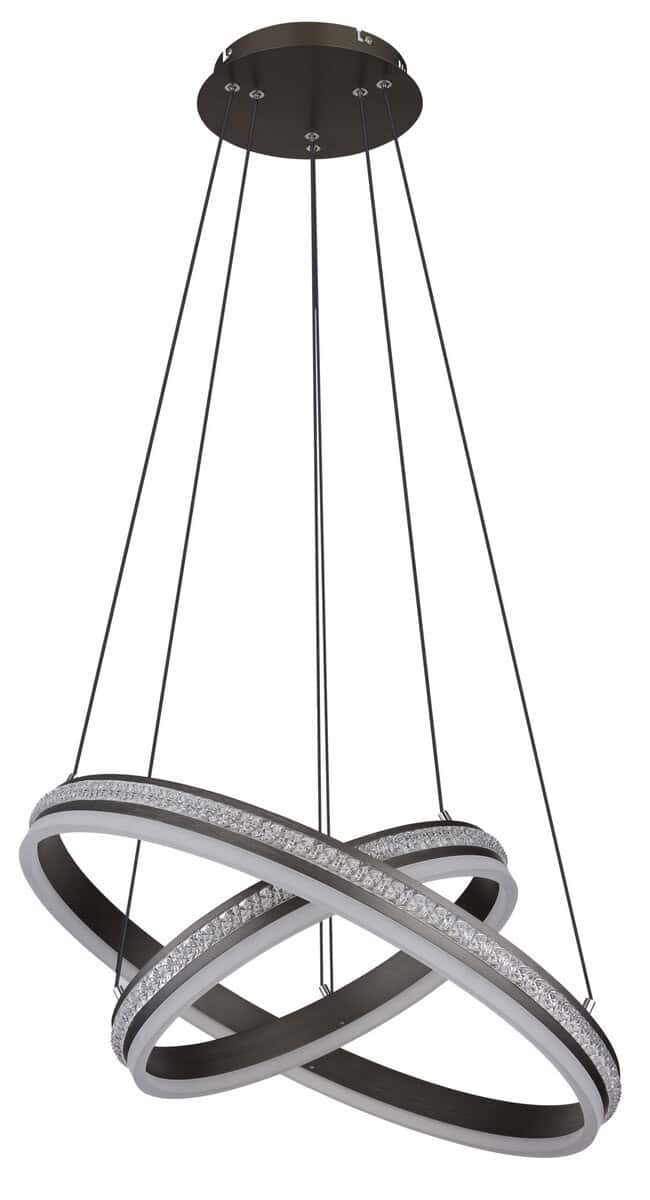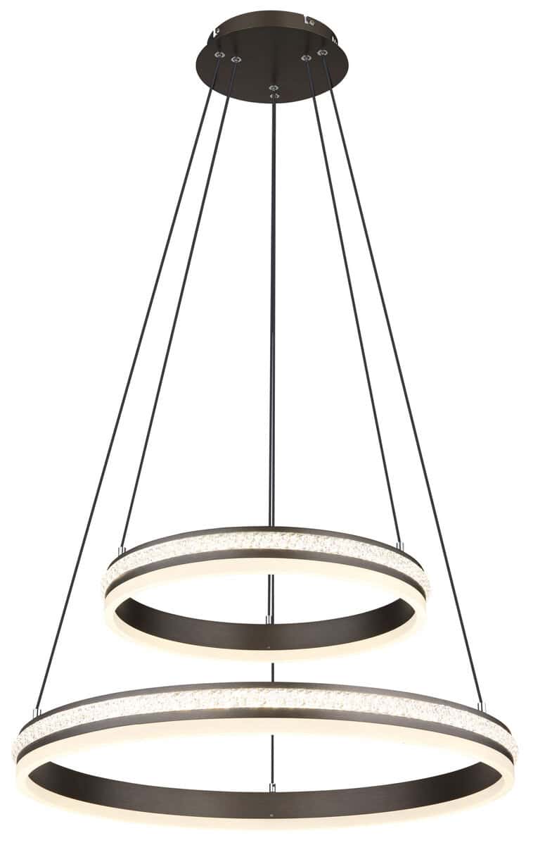 Uronite u fascinantan svijet GROUNI privjesne lampe, prave privlačnosti u vašem domu! Brušeni metal u boji titanijuma i kristal od prozirne plastike u kombinaciji sa opal akrilom stvaraju svetlosno raspoloženje koje oduzima dah. Ova viseća lampa sa mogućnošću zatamnjivanja daje vam mogućnost da podesite osvetljenje u različitim fazama preko zidnog prekidača i popravite boje po svom ukusu. Integrirana memorijska funkcija i praktično noćno svjetlo osiguravaju udobnost i praktičnost. GROUNI je podesiv po visini i dolazi s daljinskim upravljačem, uključujući bateriju (2x AAA). Sa prečnikom od 600 mm i visinom od 1200 mm, kao i prstenom od 60 cm i 40 cm, nudi izdašno i impresivno osvetljenje. GROUNI sadrži energetski efikasnu LED sa izlaznom snagom od 60W i osvjetljenjem od 3387 lumena. Oživite svoj prostor i dajte izjavu u smislu stila i elegancije uz GROUNI visilicu!