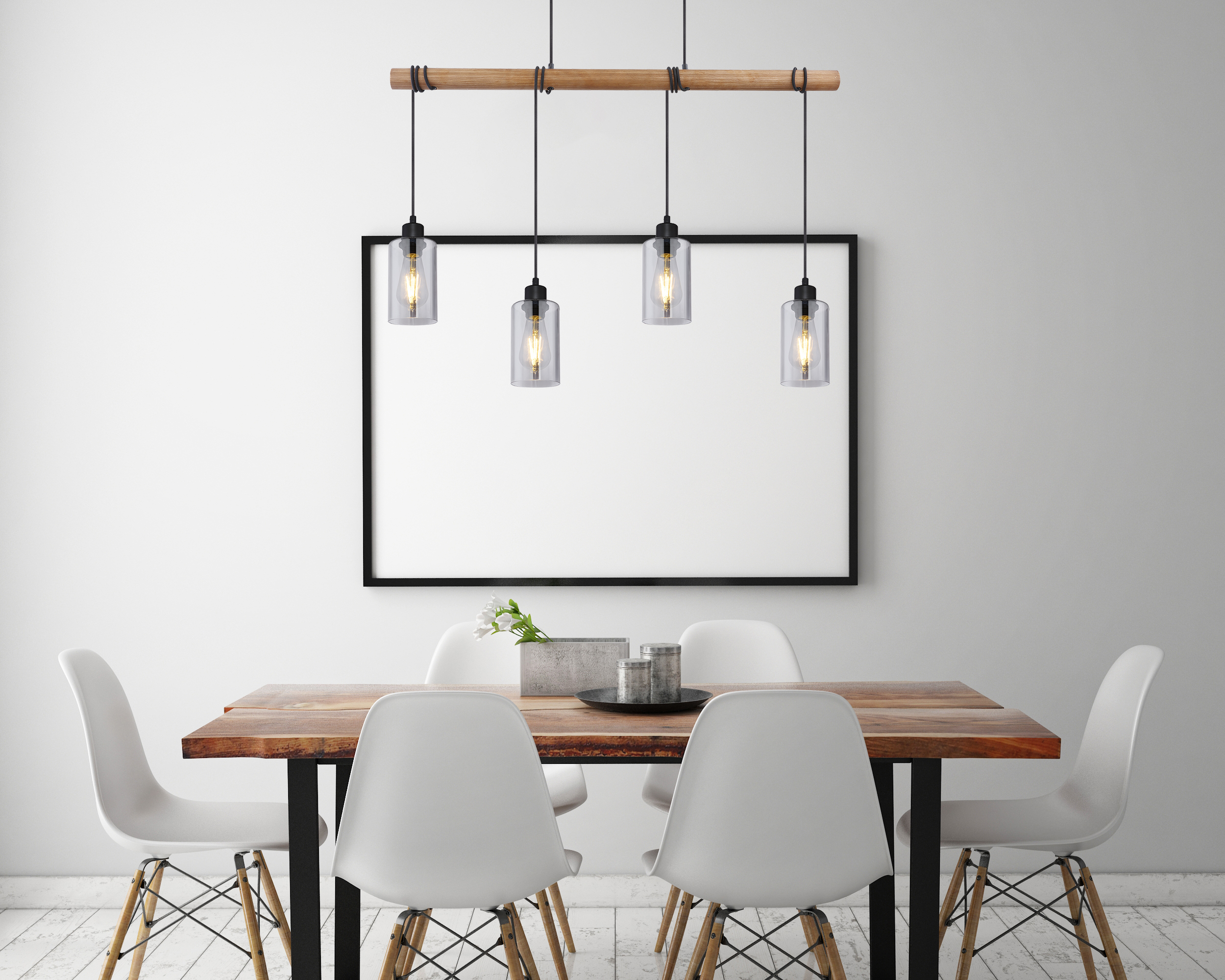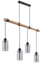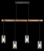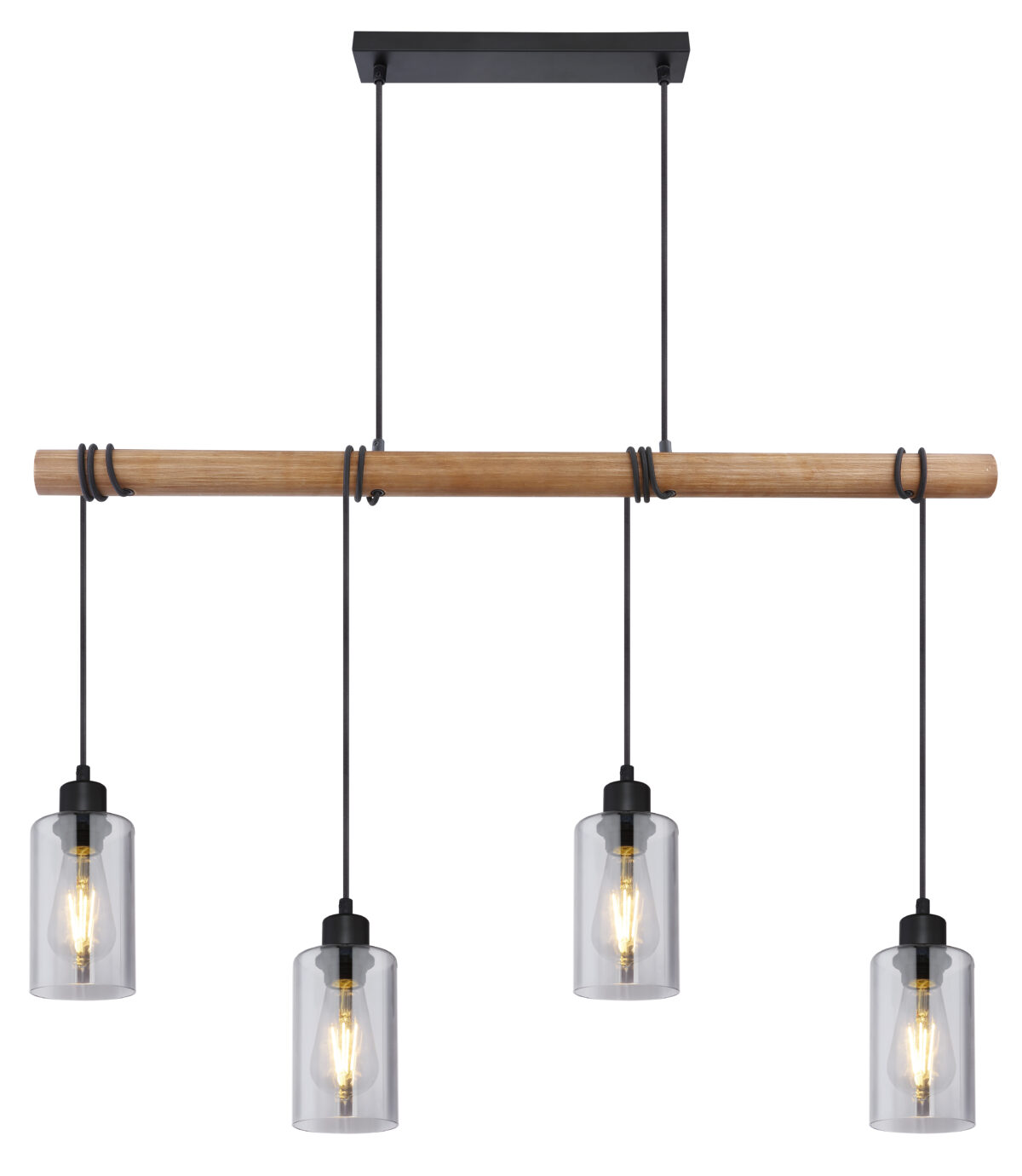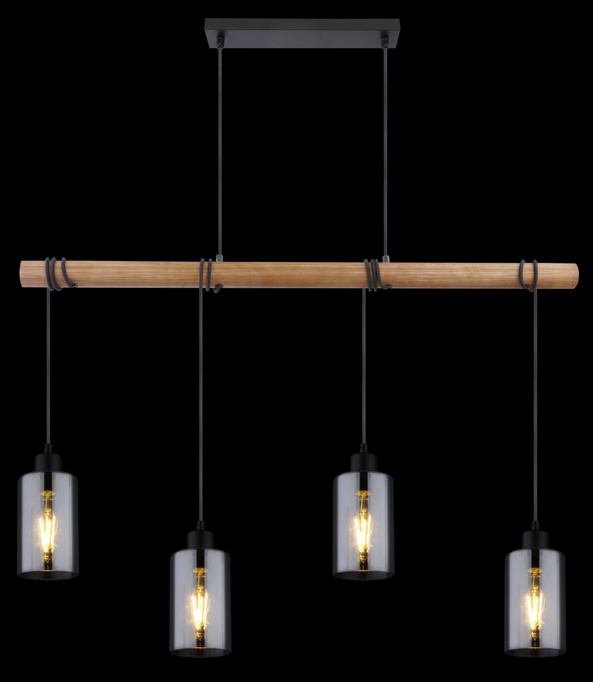 Ova moderna viseća lampa Hadera serije impresionira svojim elegantnim dizajnom od crno-mat metala i drveta. Zbog svog izduženog oblika, visilica dužine 98 cm može se divno postaviti preko stola, koji tada dobija ujednačeno osvetljenje. Kablovi omotani oko drvene šipke opremljeni su sa četiri cilindrična, zadimljena staklena sjenila, čiju visinu možete podesiti na maksimalno 130 cm. Osim toga, možete ih opremiti sa E27 sijalicama po izboru, što vam daje mogućnost da odredite boju svjetla i svjetlinu prema vašim željama. S više artikala iz serije Hadera možete upotpuniti cjelokupnu sliku vašeg interijera.