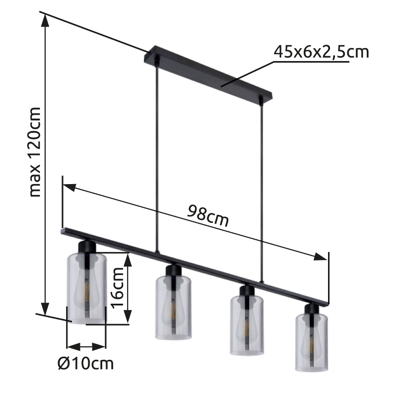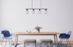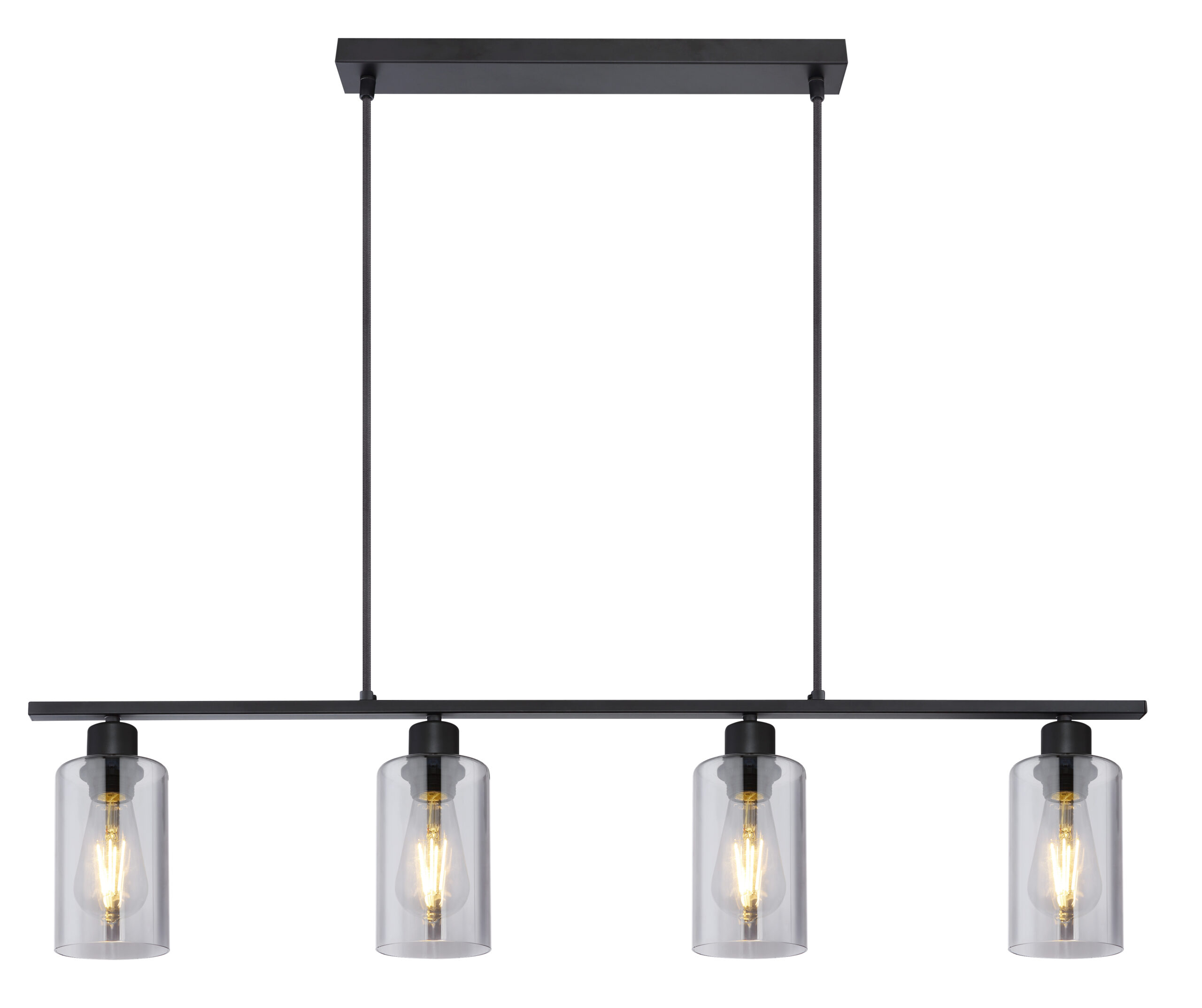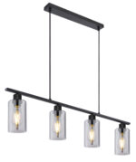 Zahvaljujući svom izduženom obliku, Viseća lampa serije Hadera od crno-mat metala je odlično prikladna za montažu preko trpezarijskog stola, koji tada dobija ujednačeno osvetljenje. Viseća lampa dužine 98 cm može biti opremljena sa četiri E27 sijalice po vašem izboru, svaka okružena zadimljenim, cilindričnim staklom, koja visi 1,2 m od plafona. Ovo vam omogućava da pojedinačno odredite boju i svjetlinu svjetla. Uz nekoliko članaka iz serije Hadera, možete upotpuniti cjelokupnu sliku vašeg zatvorenog prostora.