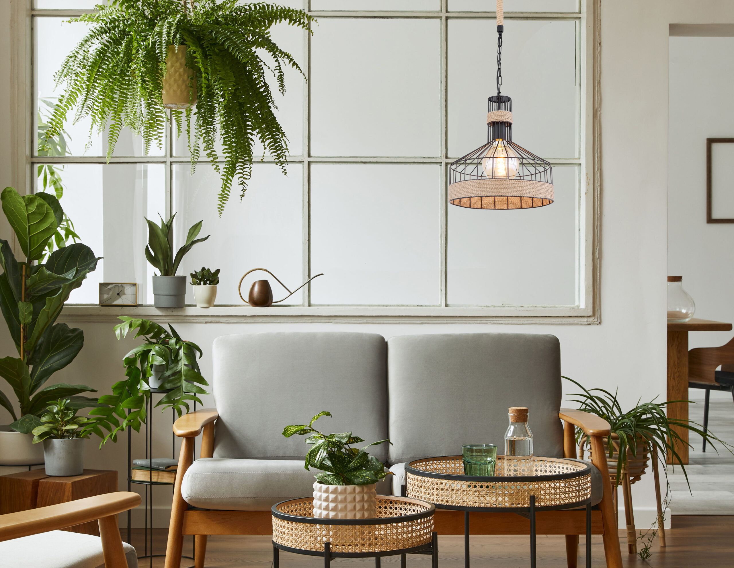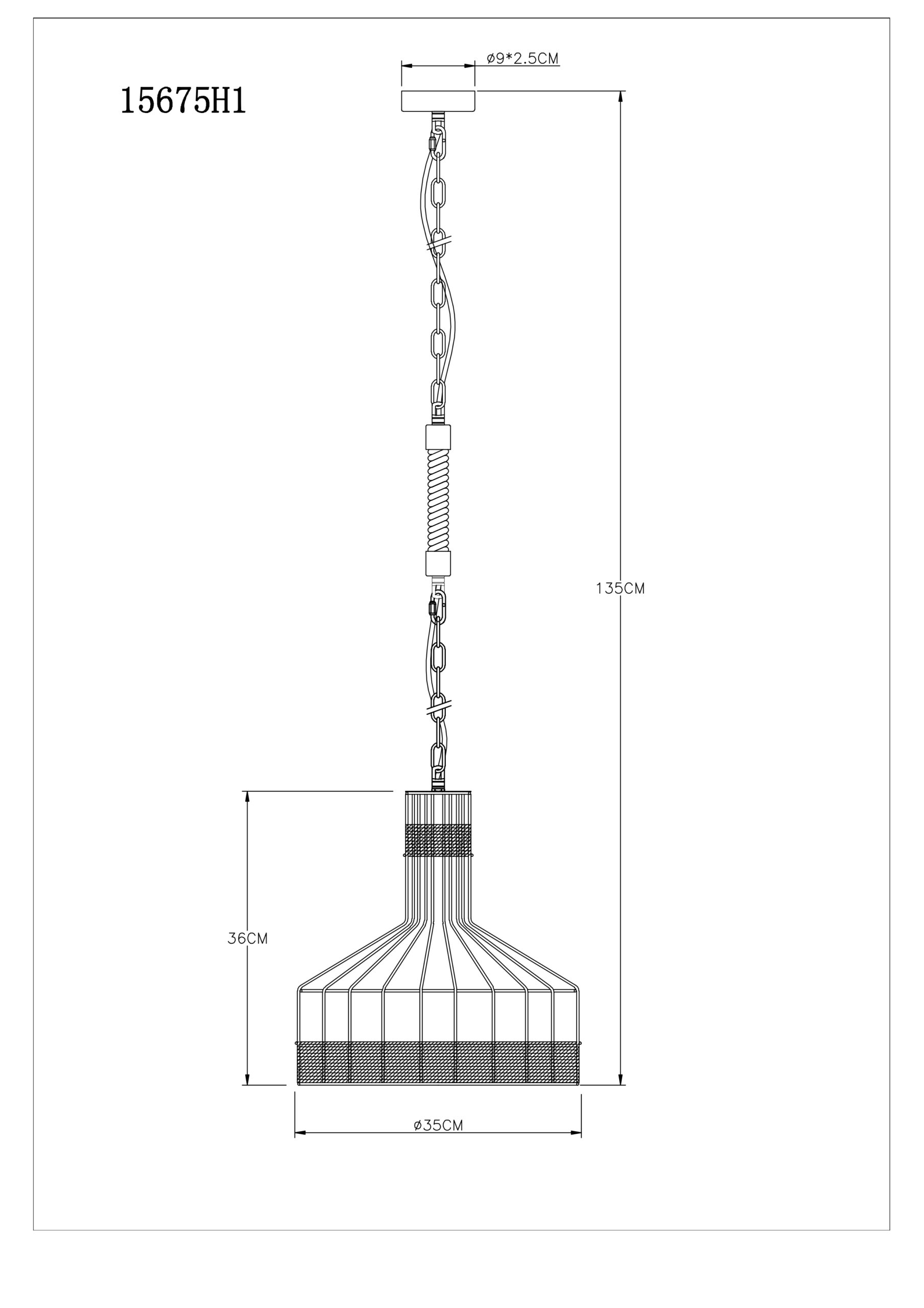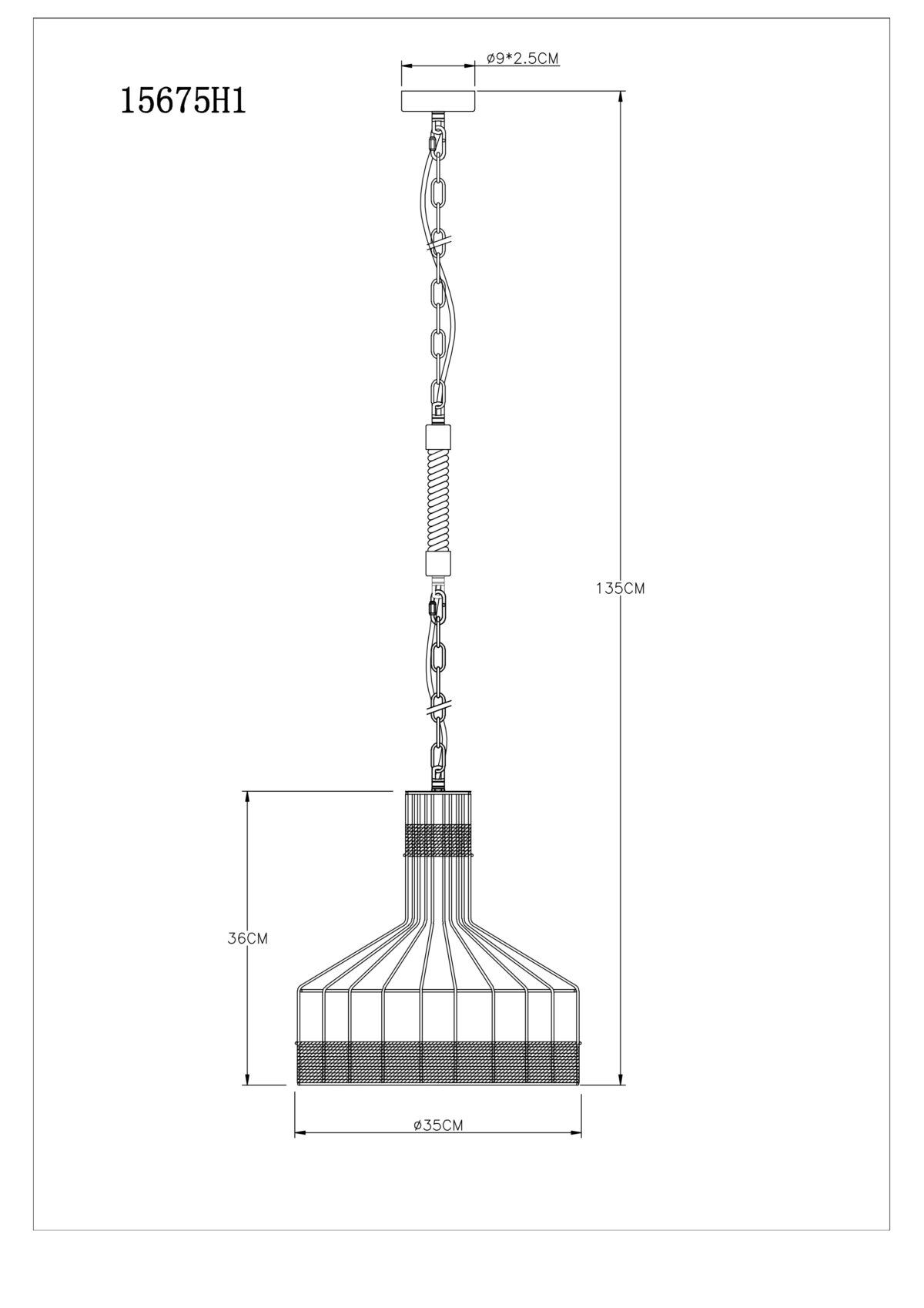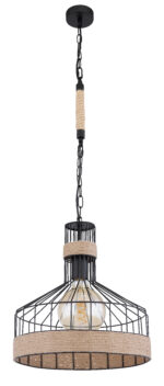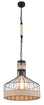 Ova visilica, nazvana Halia, strši u prostoriju ukupne dužine 135 cm. Abažur (Ø 35 cm) se sastoji od crnih šipki koje je vrlo lijepo namotano okolo konopcem od konoplje. Slobodnim odabirom izvora svjetlosti (E27/max. 60W) možete odrediti intenzitet svjetla i boju svjetla u vlastitom domu. LED sijalice su posebno pogodne za upotrebu u otvorenim svetiljkama bez stvaranja odsjaja. Zbog njihove dugovečnosti preporučujemo upotrebu LED lampi. Kako biste upotpunili cjelokupnu sliku u svojoj kući, preporučujemo korištenje više modela iz ove serije.
