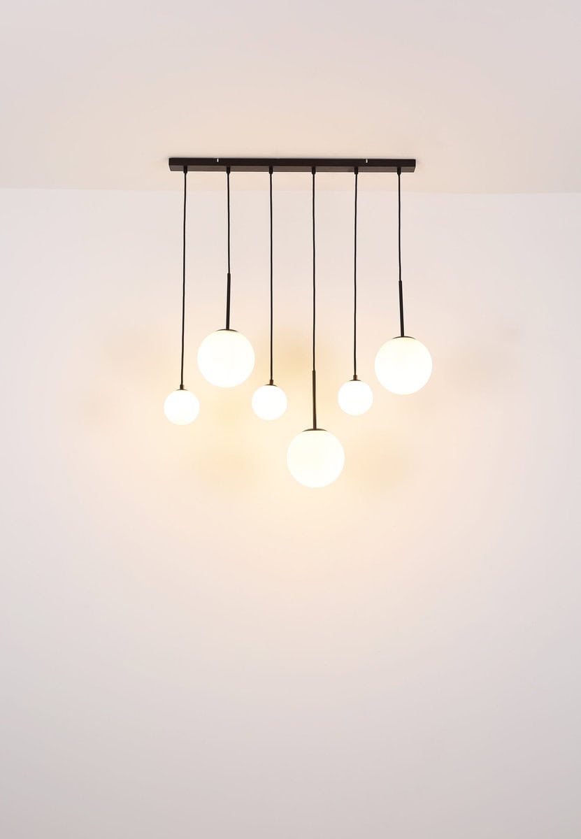 Otkrijte bezvremensku eleganciju viseće lampe, pravog dragulja za vaš dom. Sa svojim uglađenim dizajnom i visokokvalitetnom izradom, ova svjetiljka će sigurno privući pažnju. Opalno staklo osigurava meku i ugodnu distribuciju svjetlosti, dok kabel u crnoj tekstilnoj boji daje stilski štih cjelokupnoj slici. Sa dimenzijama 910x200x1170mm, ova visilica se savršeno uklapa u različite prostorije. Tri različita stakla prečnika 20 cm i 12 cm daju lampi dodatni šarm. Napominjemo da potrebne sijalice (3x E27 LED 9W 230V, osim 3x G9 LED 5W 230V) nisu uključene u obim isporuke.