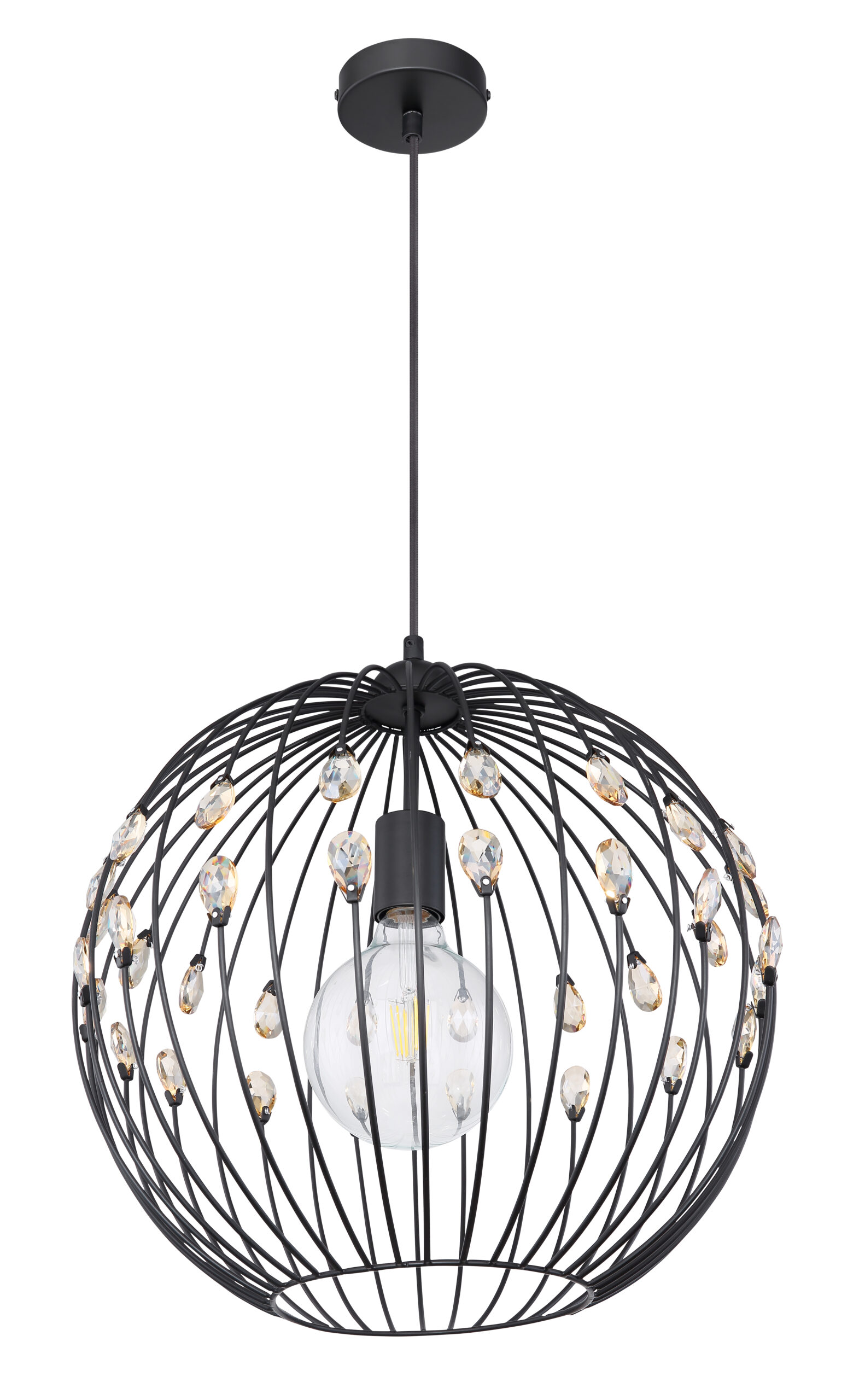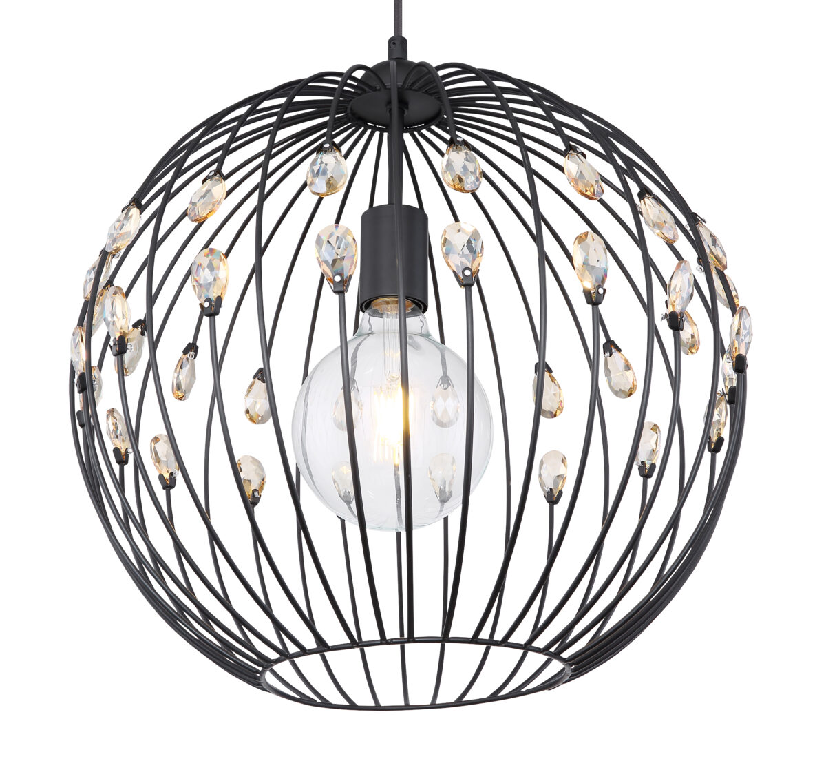 Ova crna mat viseća lampa uvjerava svojim retro dizajnom i istovremeno impresionira kristalima K9 koji se koriste u abažuru (Ø40cm). Nadalje, abažur u obliku rešetke od crnog metala stvara zanimljivu sliku sjene na njihovim zidovima. Ova lampa ima ukupnu dužinu od 120 cm i garantuje vam da privlačite poglede u vašoj trpezariji i dnevnom boravku. Slobodnim odabirom izvora svjetlosti (E27/max. 1 x 60W) možete sami odrediti intenzitet svjetlosti i boju svjetla ove unutrašnje svjetiljke. Zbog njihove dugovečnosti, preporučujemo da koristite LED sijalice. Sa ostalim modelima ove serije možete dodatno uljepšati sliku svog životnog prostora.
