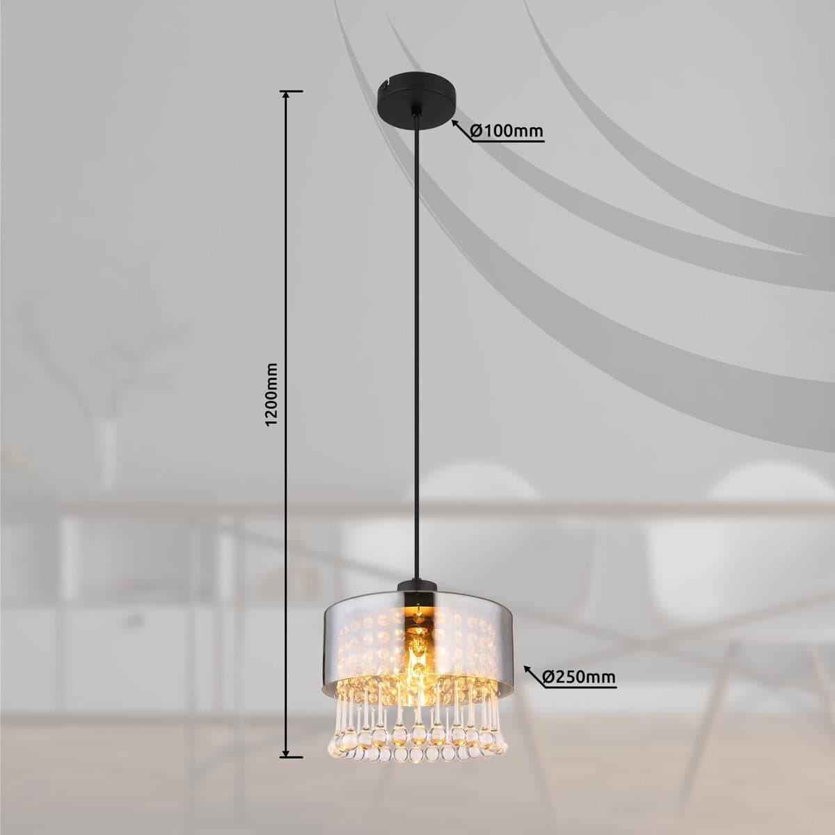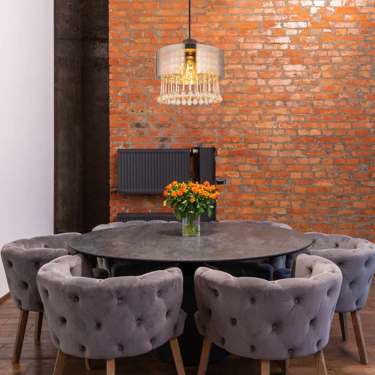 Viseća lampa HENDRY pravi je dragulj za svaku prostoriju. Svojim okruglim dizajnom i sjenilom završenim blistavim kristalom koji visi iznutra, dodat će elegantan i tradicionalni štih vašem domu. Telo HENDRY viseće lampe izrađeno je od mat crnog metala, što joj daje plemenit i bezvremenski izgled. Sjenilo HENDRY visilice izrađeno je od stakla u boji dima i ukrašeno je prozirnim akrilnim kapljicama i staklenim kristalima. Ovo stvara prekrasnu međuigra svjetlosti i sjaja koja svaku prostoriju uranja u ugodnu atmosferu. S promjerom od 250 mm, HENDRY visilica je idealna za manje prostorije ili kao dio svjetlosne instalacije. Nudi dovoljnu svjetlinu i prava je privlačnost za oči. Viseća lampa HENDRY je savršen primer tradicionalne rasvete sa modernim dodirom. Sigurno će privući svačiju pažnju i okupati vaš dom blistavom svjetlošću.