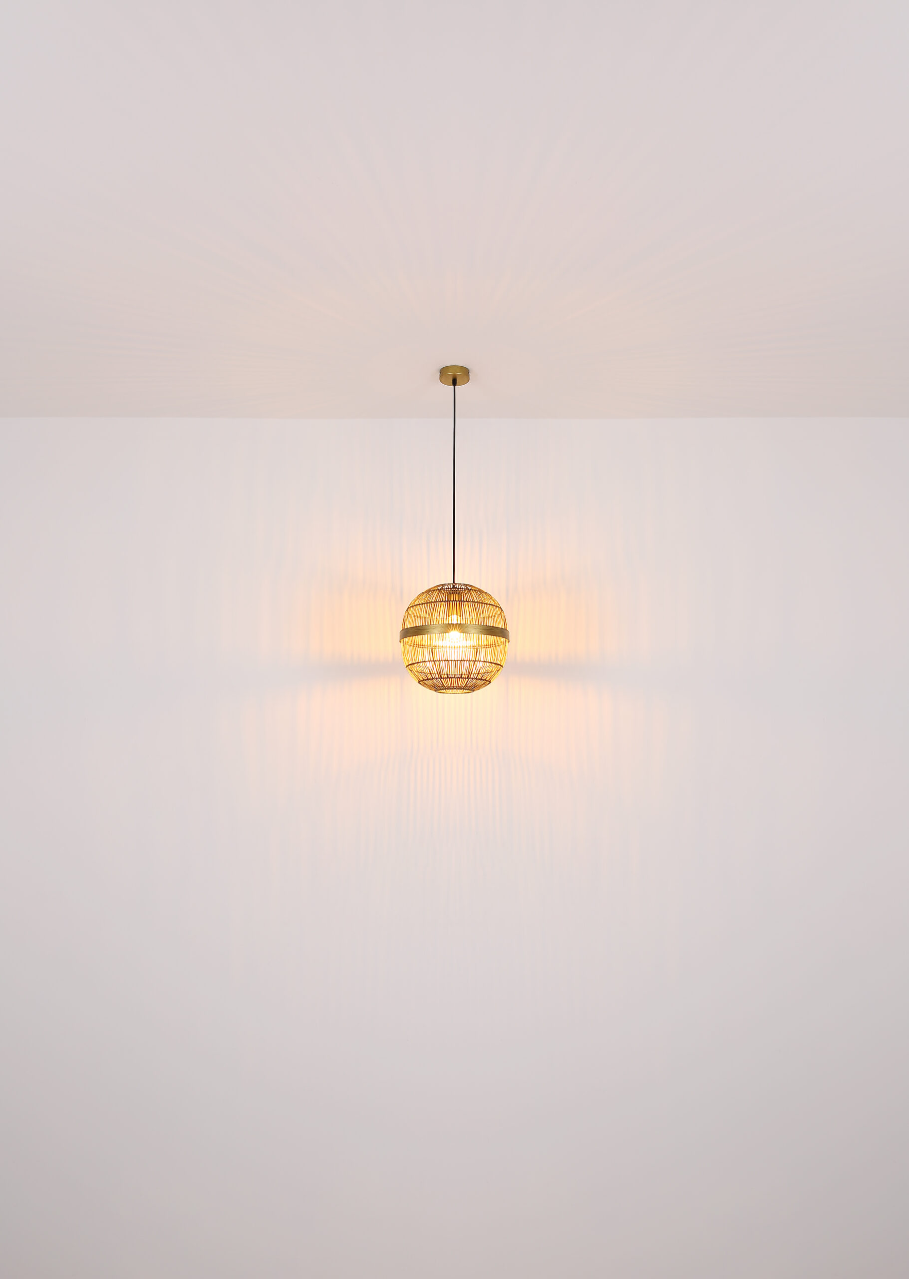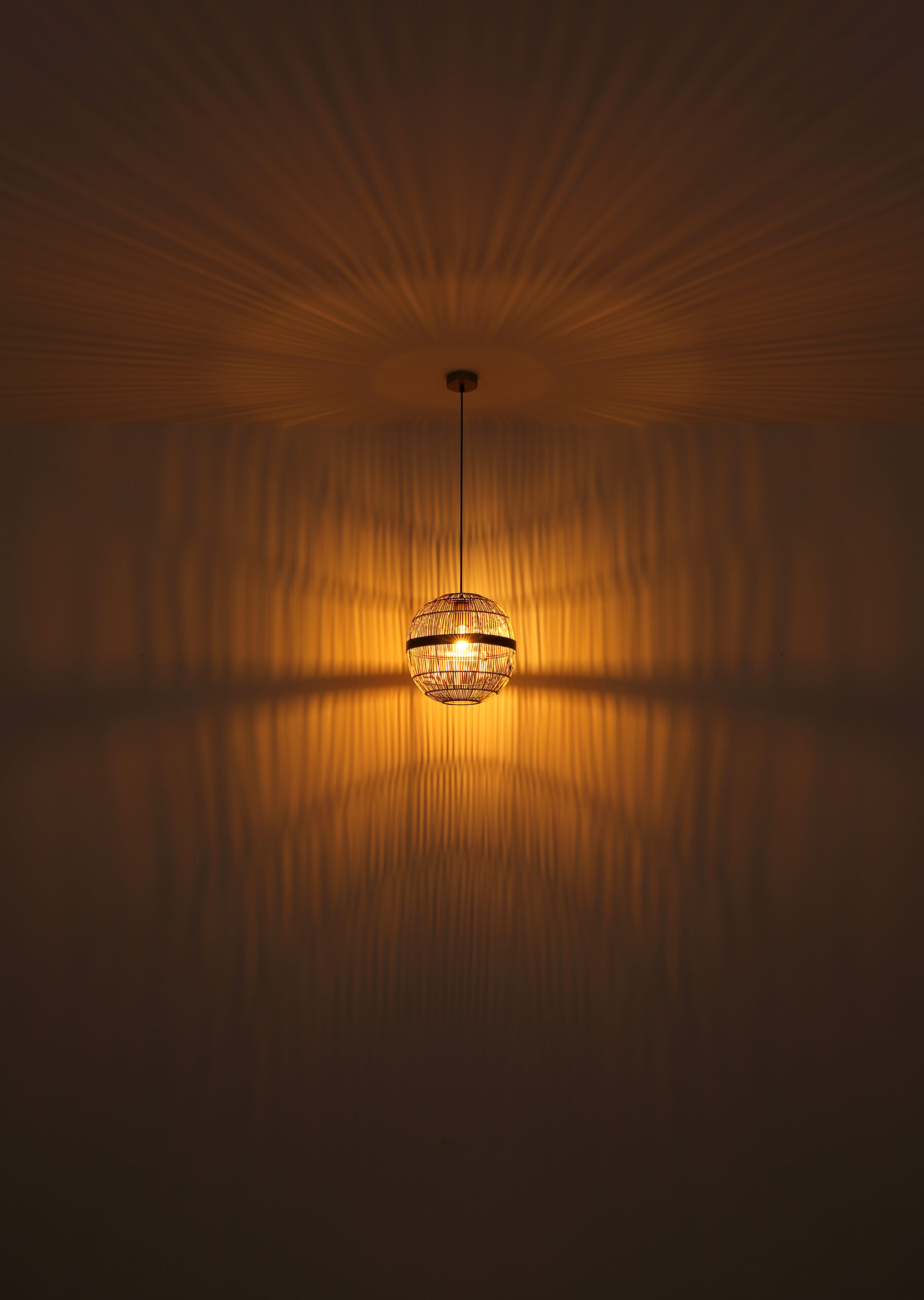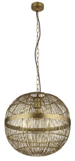 Ova visilica (ø 40 cm) je prekrasan dodatak vašem interijeru. Sastoji se od okruglog metalnog bojnog paravana od starog mesinga, koji visi 1,2 m od plafona na okruglom plafonskom nosaču. Možete ga opremiti sijalicom E27 po vašem izboru, koja vam omogućava da individualno odredite boju svjetla i svjetlinu. Zbog dugovečnosti i uštede energije preporučujemo LED sijalice.