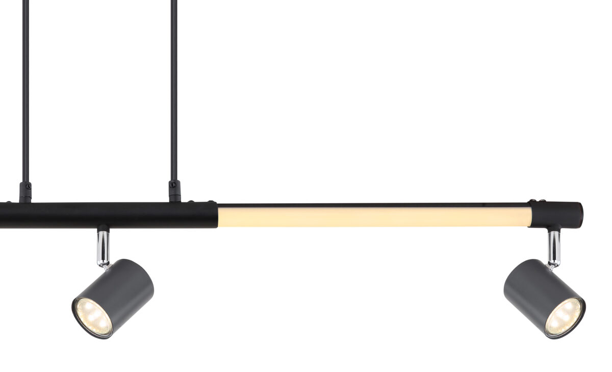 Ova viseća lampa iz HL serije prekrasan je dodatak vašem interijeru. Viseća lampa dužine 100 cm sastoji se od crno-mat metalne šipke koja je sa leve i desne strane opremljena opal plastikom i visi do 120 cm od plafona na dva kabla. Takođe je opremljen sa tri okretna LED mesta. Uključene LED sijalice daju 690 lumena jakog svetla sa prijatnom bojom svetla od 3000 Kelvina (topla bela). Uz više članaka iz iste serije možete upotpuniti cjelokupnu sliku u svoja četiri zida.