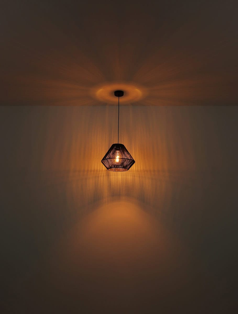 Prekrasna visilica iz serije HOUDINI inspirira sjajnim dizajnom. Crni kabel dužine 1,2 m se proteže od okruglog plafonskog priključka do utičnice E27, koja je opremljena sa sjenilom (Ø 35 cm) od prirodnih užadi u bež boji. E27 utičnica vam omogućava da slobodno birate boju svjetla i svjetlinu do maksimalne snage od 15 vati. Zbog dugovečnosti i uštede energije preporučujemo LED sijalice.