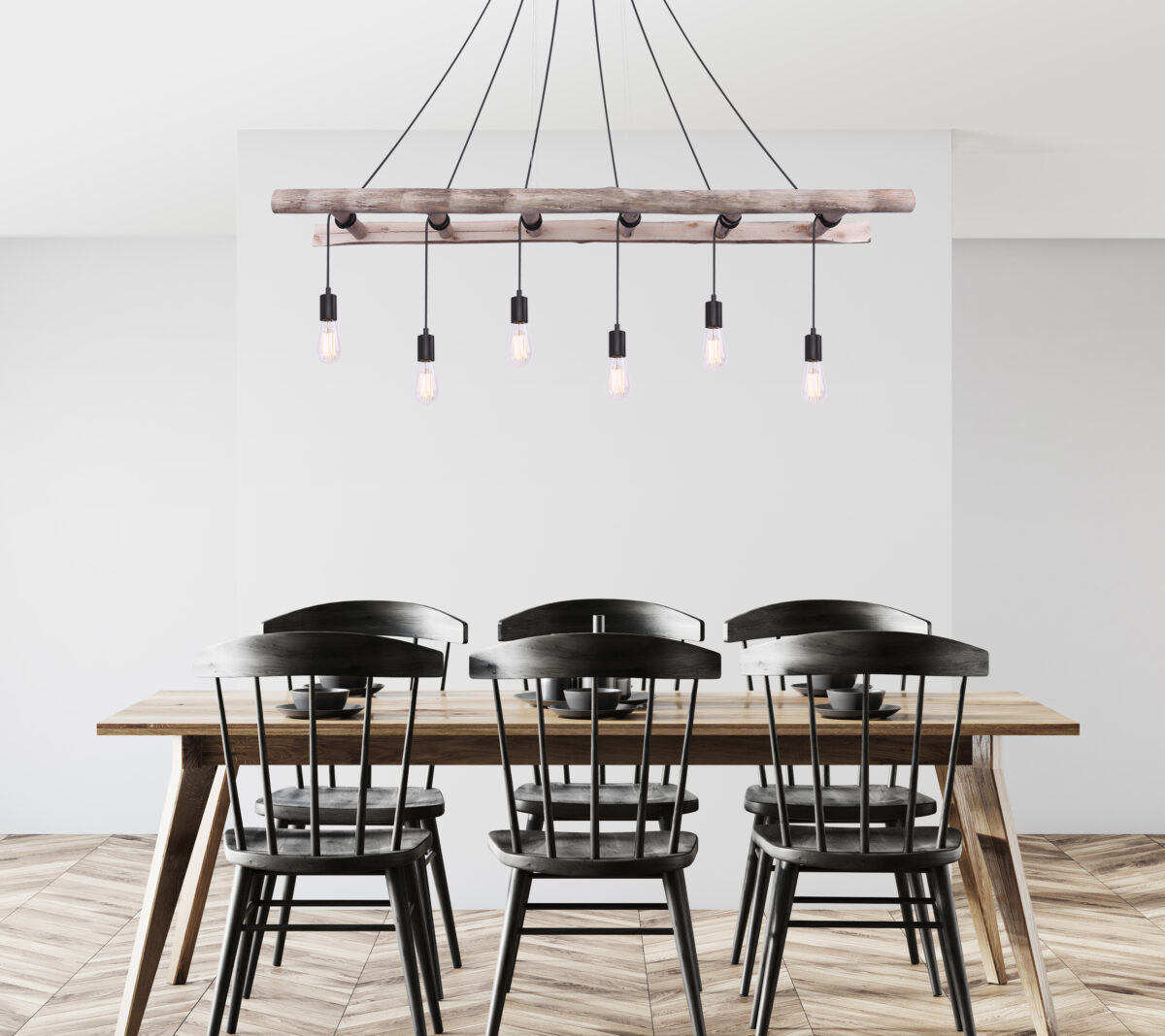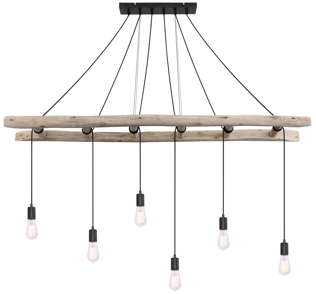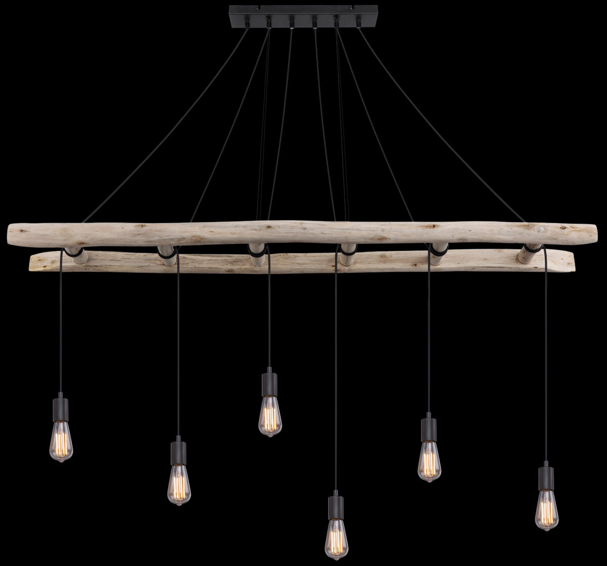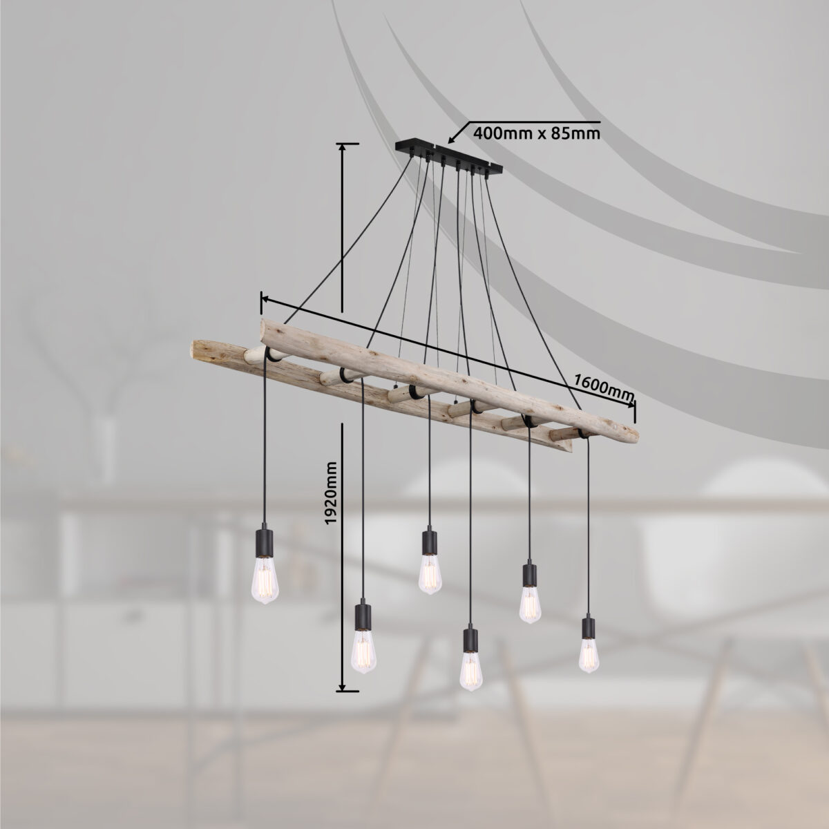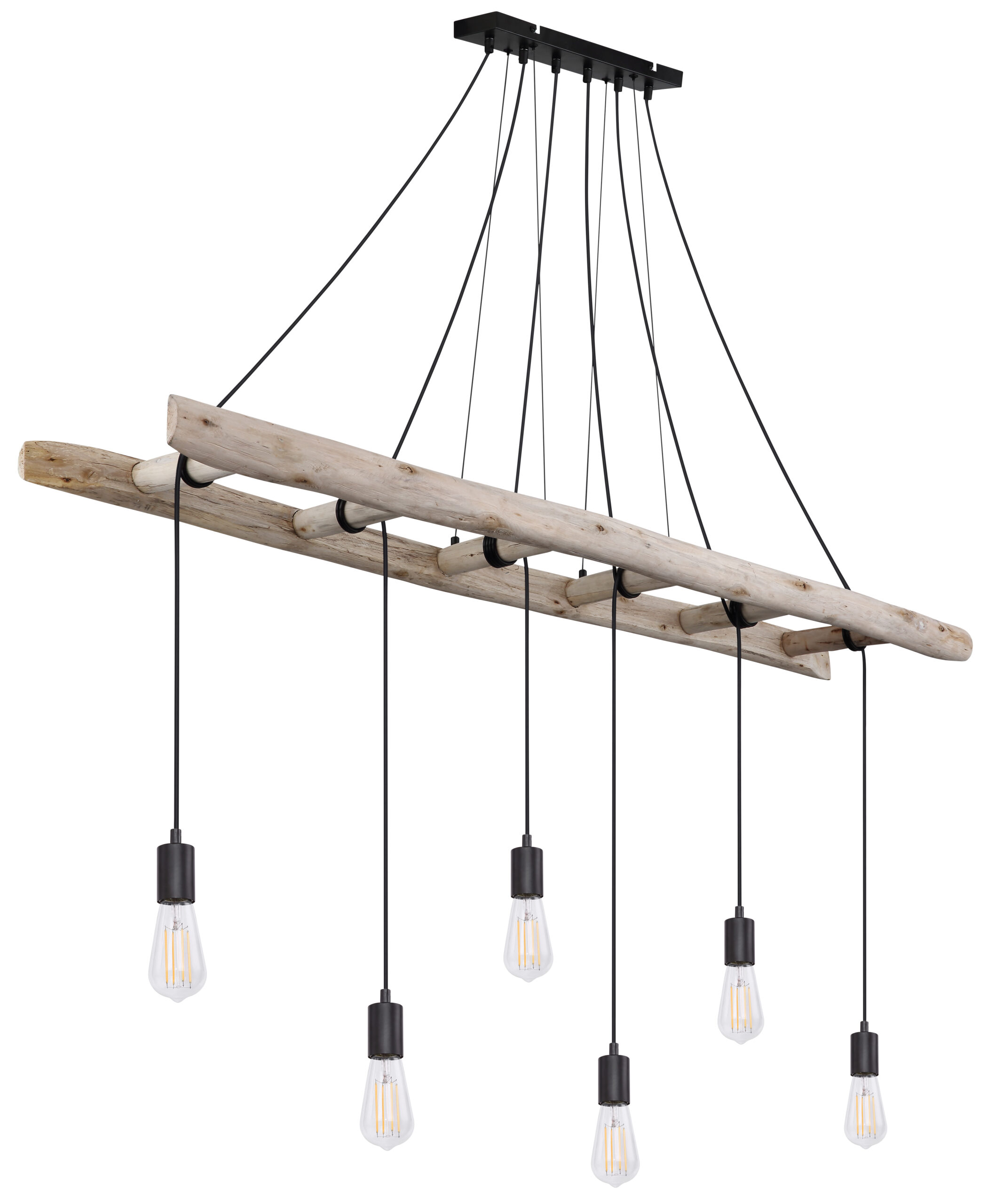 Ova viseća lampa apsolutno privlači poglede. Ova vintage IRMGARD lampa impresionira drvenim merdevinama koje vise horizontalno u prostoriji, čije se prečke koriste za umotavanje. Crni kablovi vode u E27 utičnice. Zbog grla E27 možete sami odrediti sijalicu (6 x max. 60 vati). Zbog uštede energije i izdržljivosti preporučujemo LED sijalice za ovu viseću lampu.