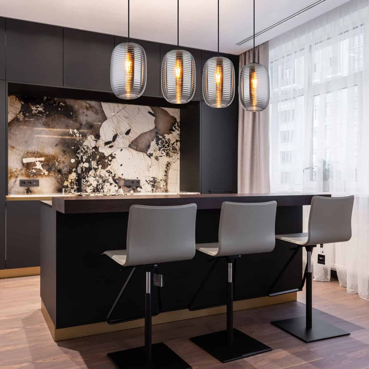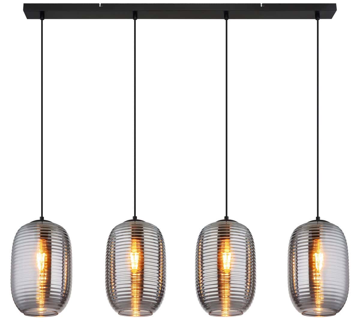 Dajte svom životnom prostoru poseban akcenat uz JEFREY METAL BLACK MATT viseću lampu! Ova elegantna viseća lampa uvjerava svojim modernim, izduženim dizajnom i opremljena je sa četiri okrugla, lukovičasta stakla u elegantnom staklu u boji dima. Nježni žljebovi na sočivima stvaraju jedinstvenu igru svjetla i harmonično se uklapaju u svaki dizajn interijera. Kućište izrađeno od robusnog, mat crnog metala upotpunjuje elegantnu cjelokupnu sliku i osigurava stabilnost. Sa dužinom od 1100 mm i širinom od 200 mm, viseća lampa JEFREY idealna je za preko trpezarijskih stolova ili u većim dnevnim sobama. Opremljen sa četiri E27 grla, imate slobodu da odaberete sijalice po svom ličnom ukusu (sijalice nisu uključene). Unesite stil i udobnost u svoj dom uz ovu izuzetnu viseću lampu!