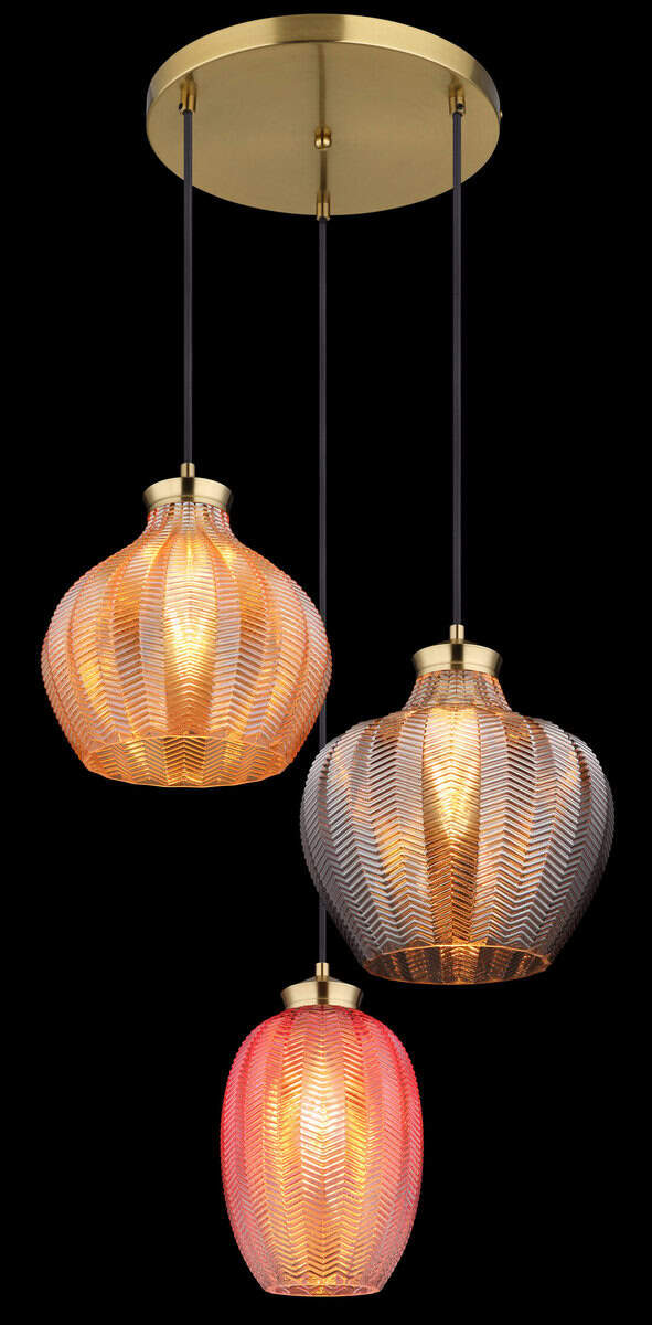 Viseća lampa “JESSICA” kombinuje moderan dizajn sa razigranom raznolikošću boja i oblika. Njegovo okruglo tijelo izrađeno od mat metala zlatne boje skladno je u kontrastu sa lukovičastim čašama ukrašenim ukrasnim žljebovima. Tri staklena sjenila u dimnoj, jantarnoj i kupinovino crvenoj daju lampi ne samo posebnu estetiku, već i toplu i privlačnu atmosferu. Viseća lampa je savršena za upotrebu iznad trpezarijskih stolova, u dnevnim boravcima ili hodnicima, gde ne samo da obezbeđuje ravnomerno osvetljenje, već služi i kao privlačan pogled. Zahvaljujući raznolikoj shemi boja, “JESSICA” se fleksibilno prilagođava različitim stilovima opremanja i vješto postavlja akcente u prostoriji. Sa visokokvalitetnim materijalima i atraktivnim dizajnom, predstavlja obogaćenje svakog doma.