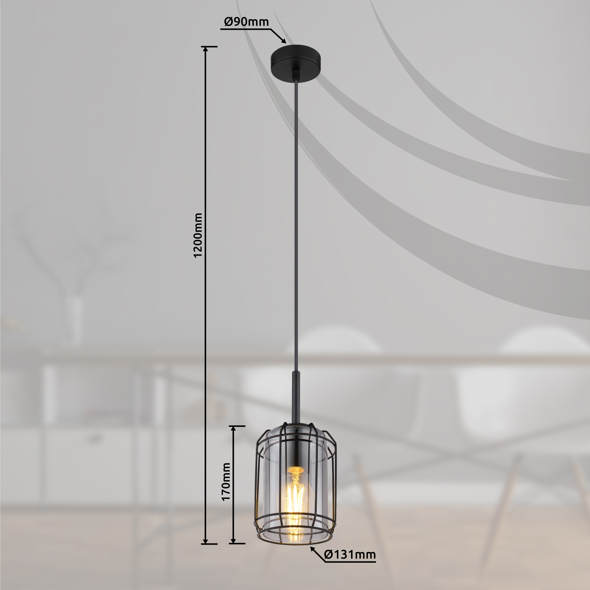 Ova viseća lampa iz Kammi serije (ø 13 cm) je moderan dodatak vašem dnevnom boravku ili trpezariji. Sastoji se od zadimljenog stakla, koji je obložen crno-mat metalnom rešetkom i visi na kablu do 120 cm od plafona. Osim toga, možete ga opremiti sa E27 sijalicom po vašem izboru, što vam daje mogućnost da individualno odredite boju svjetla i svjetlinu. Sa ostalim modelima iste serije možete upotpuniti cjelokupnu sliku u svoja četiri zida.