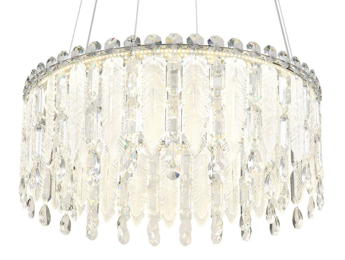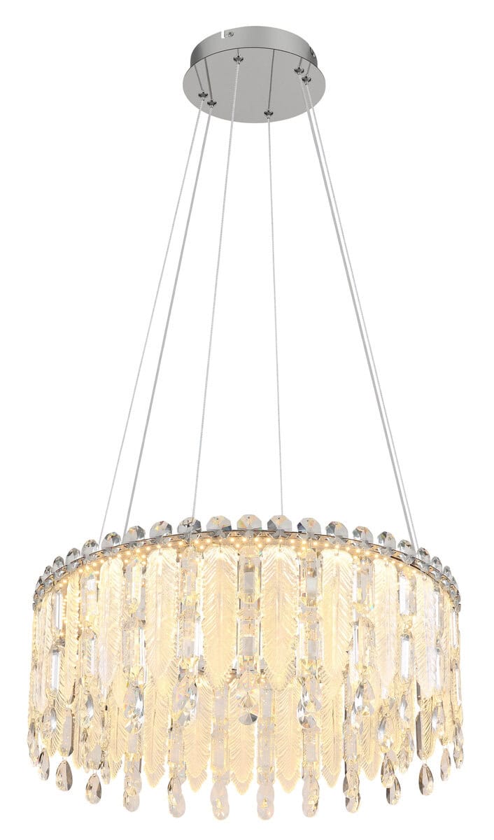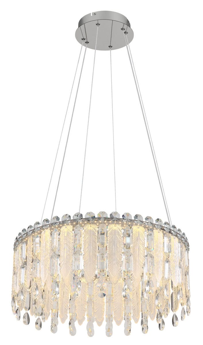 Elegantna okrugla viseća lampa PENDANT LAMP METALNA KROMIRANA kombinuje eleganciju sa najsavremenijom tehnologijom. Kromirano metalno kućište i blistavi kristal K5 koji visi u jasnom izgledu daju ovom dizajnu luksuzni dodir. Sa velikim prečnikom od 600 mm i snagom od 58 W, ova viseća lampa proizvodi impresivan svetlosni tok od 3770 lumena, pružajući svetlo i atmosfersko osvetljenje. Priloženi daljinski upravljač vam omogućava praktično prigušivanje svjetline, kao i podešavanje temperature boje od 2700K do 6000K. Osim toga, SVJETLJICA METALNA KROMIRANA ima memorijsku funkciju, funkciju noćnog svjetla i mogućnost individualnog fiksiranja boje svjetla. Unesite stil i funkcionalnost u svoj dom uz ovu izuzetnu viseću lampu i uživajte u iskustvu osvjetljenja po mjeri.