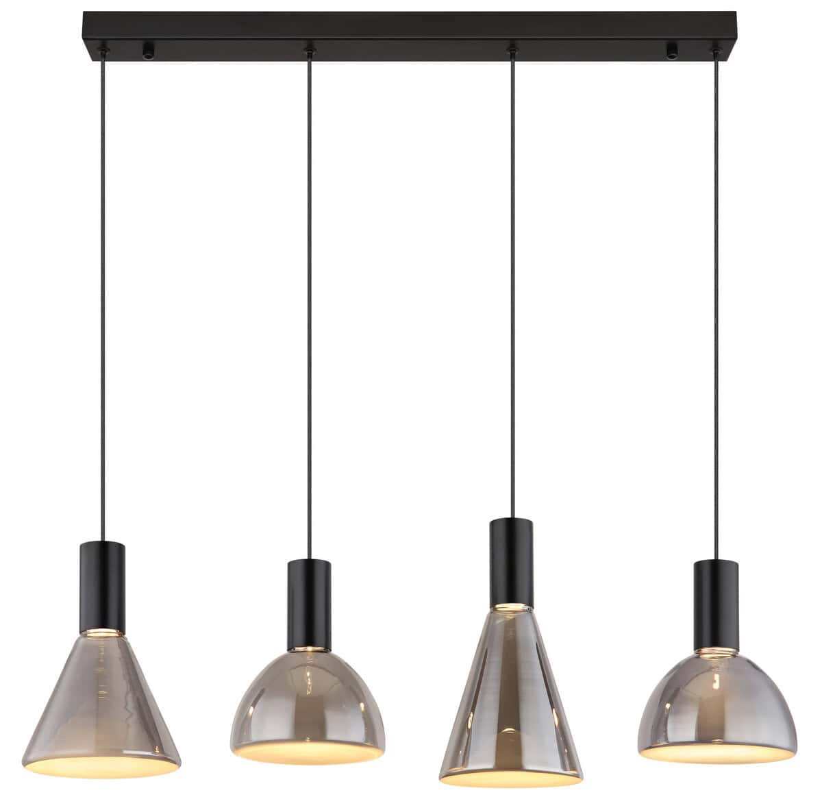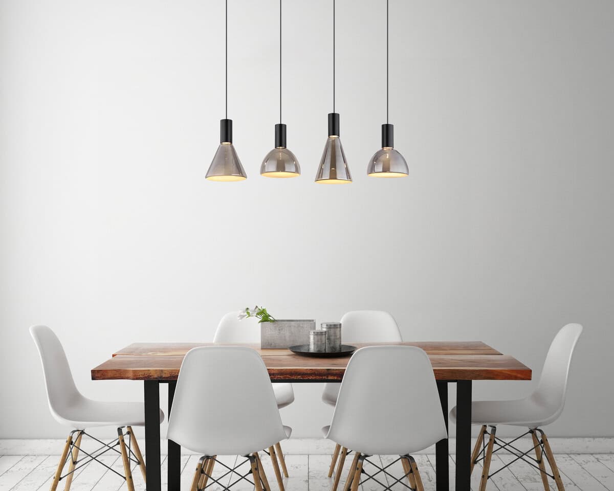 Izdužena visilica METAL BLACK MAT sa ravnom stazom i četiri vješalice je elegantno i moderno rješenje za rasvjetu za vaš dom. Različiti oblici stakla u boji dima, pjeskarenom dizajnu daju ovoj visećoj lampi jedinstven izgled. Tijelo od crnog mat metala naglašava elegantan izgled i neprimjetno se uklapa u svaki interijer. Izduženi oblik naočara dužine 870 mm i širine 170 mm osigurava ujednačeno osvjetljenje u vašoj prostoriji. Sa snagom od 29W i izlaznom snagom od 1981 lumena sa toplom bojom svetlosti od 3000K, ova viseća lampa nudi svetlo i energetski efikasno rešenje za osvetljenje. Bilo da se nalazi u trpezariji, dnevnom boravku ili hodniku, izdužena visilica METAL BLACK MATT stilski će ulepšati vašu sobu i stvoriti ugodnu atmosferu. Doživite poseban ambijent koji ova fascinantna viseća lampa donosi u vaš dom!