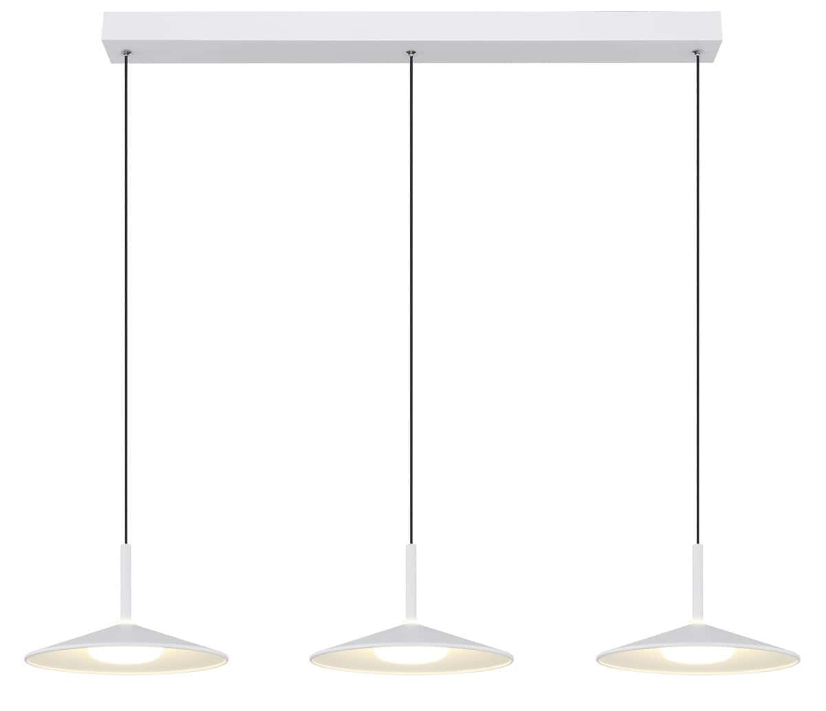 Doživite jedinstvenu visilicu LAMPONE, koja će vaše sobe opremiti posebnim svjetlom. Viseća lampa LAMPONE sastoji se od dugačkog, blago ravnog kućišta od bijelog, mat lakiranog metala, na koje su pričvršćena tri okrugla, ravna sjenila. Sjenila su izrađena od metala i opal akrila, što stvara jedinstvenu rasvjetu. Sa snagom od 1100 lumena, LED svjetlo osigurava dovoljnu svjetlinu. Temperatura boje od 4000K daje LAMPONE moderan i čist izgled. Viseća lampa LAMPONE je savršena za sobe koje žele da ponude jedinstven ambijent i atmosferu udobnosti. Okačite LAMPONE na strop ili balkon i ispunite svoje sobe posebnim svjetlom.