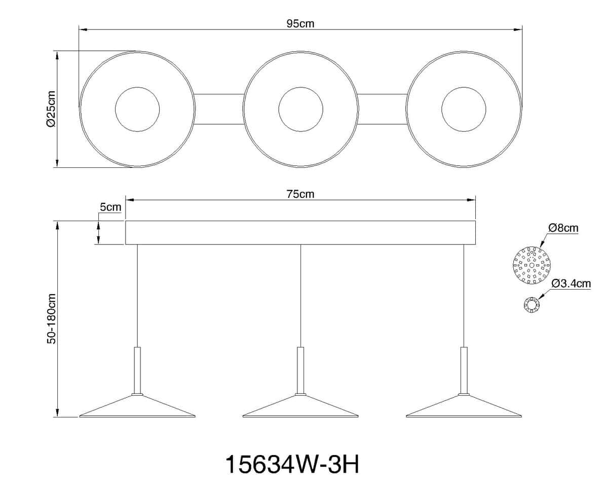 Otkrijte LAMPONE, elegantnu viseću lampu koja se ističe svojom harmoničnom arhitekturom dizajna. LAMPONE se sastoji od tri okrugla, ravna sjenila postavljena na dugačku stabljiku. Sjenila su podesiva po visini, što omogućava podešavanje osvjetljenja tačno na potrebnu visinu. Tijelo lampe je izrađeno od metala u bijeloj mat finišu, što daje moderan i minimalistički izgled. Same nijanse su u potpunosti izrađene od metala i imaju mat finiš koji ima elegantan izgled. Osim toga, sjenila su osvijetljena akrilnim opalnim staklom, koje stvara toplu, difuznu svjetlost. Sa snagom od 1100 lumena i temperaturom boje od 4000K, LAMPONE je savršen izbor za sve koji traže moderno i efikasno osvjetljenje za svoju dnevnu sobu ili ured.