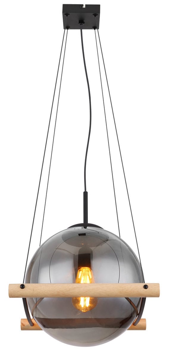 Ova viseća lampa LEONA serije sastoji se od crne mat metalne baze, drvenog okvira prirodne boje i staklenog difuzora u boji dima. Crni PVC kabel je podesiv po visini kako biste pronašli savršenu visinu za vaš objekat. Dimenzije svetiljke su DxŠxV: 335x350x1200mm. Za svetiljku je potrebna sijalica E27 maksimalne snage 15W na naponu od 230V, ali ona nije uključena.