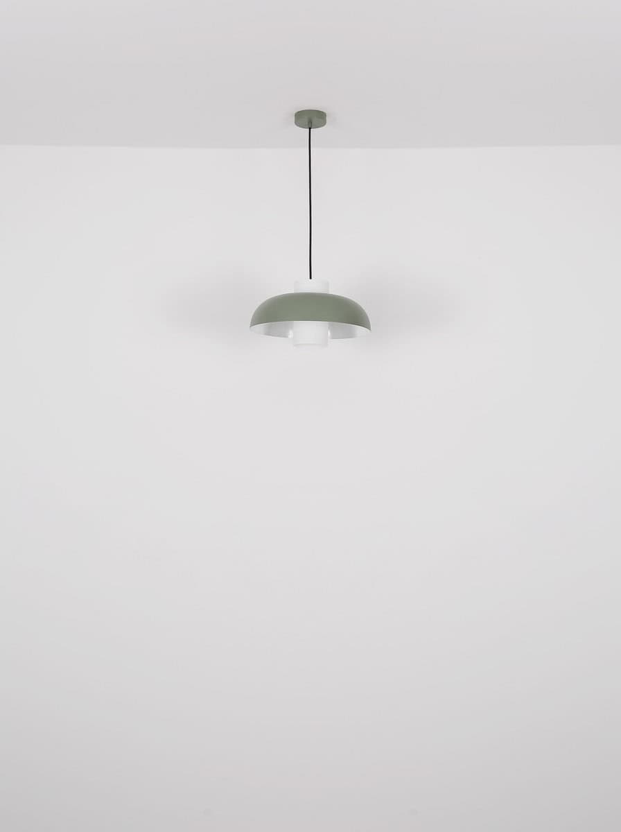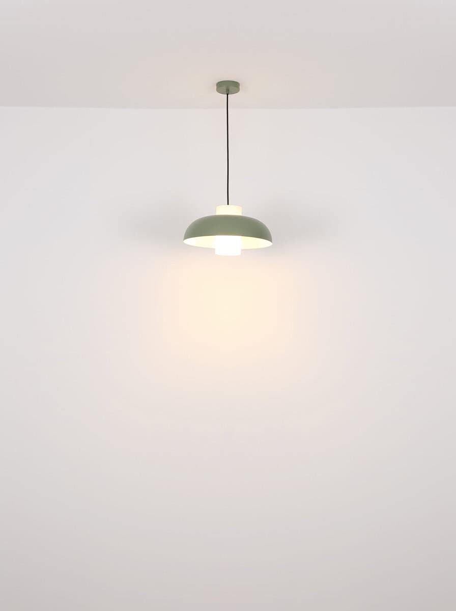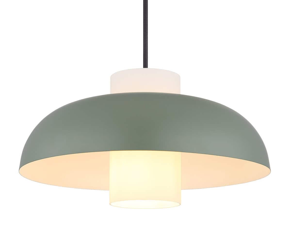 Viseća lampa KOEN impresionira svojim ravnim, okruglim sjenilom sa cilindrom od opalnog stakla unutra. Zelena, mat metalna nijansa i tijelo unose boju u moderne životne prostore. Ova svjetiljka je pogodna za sijalicu E27 (ekskluzivno) i osigurava ugodnu distribuciju svjetlosti.