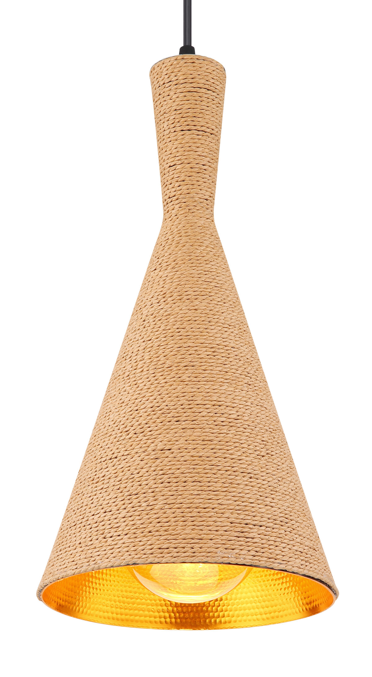 Ova viseća lampa iz serije Ludmilla (ø 19 cm) odlična je za vaš dnevni boravak ili trpezariju. Sastoji se od lijevkastog aluminijskog sjenila zlatne boje, koji je sa vanjske strane prekriven smeđim tekstilom. Možete ga opremiti sijalicama E27 po izboru, što vam omogućava da individualno odredite boju i svjetlinu svjetla. Osim toga, visina viseće lampe može se podesiti do 140 cm tokom ugradnje. Sa drugim modelima iz iste serije možete stilski poboljšati svoj interijer.