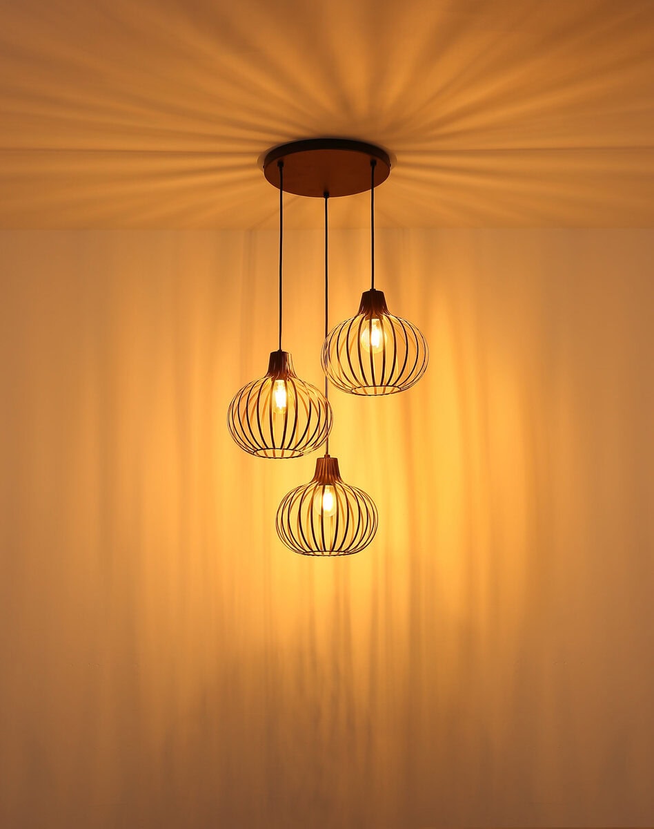 Okrugla visilica MATEO ističe se svojim upečatljivim industrijskim šarmom i rustikalnom elegancijom. Tri metalna sjenila boje hrđe vise s individualno podesivih privjesaka okačenih na centralni baldahin, formirajući harmoničan izvor svjetlosti s karakterom. Robustan metalni okvir u rđoj završnoj obradi daje uređaju autentičan vintage izgled, što ga čini idealnim za moderna potkrovlja ili interijere u seoskom stilu. Sa prečnikom od 500 mm, MATEO pruža velikodušnu pokrivenost—savršen za trpezarijske stolove, kuhinjska ostrva ili stambene prostore. Kao dio kategorije “Pendant Lights”, MATEO spaja funkcionalni dizajn s dekorativnom privlačnošću. E27 grla (sijalice nisu uključene) nude maksimalnu fleksibilnost u odabiru izvora svjetlosti – topla bela za ugodne večeri ili neutralna bela za jasnoću. MATEO impresionira svojom visokokvalitetnom izradom i ekspresivnim dizajnom, dodajući prepoznatljiv štih svakoj prostoriji dok ostaje u trendu.