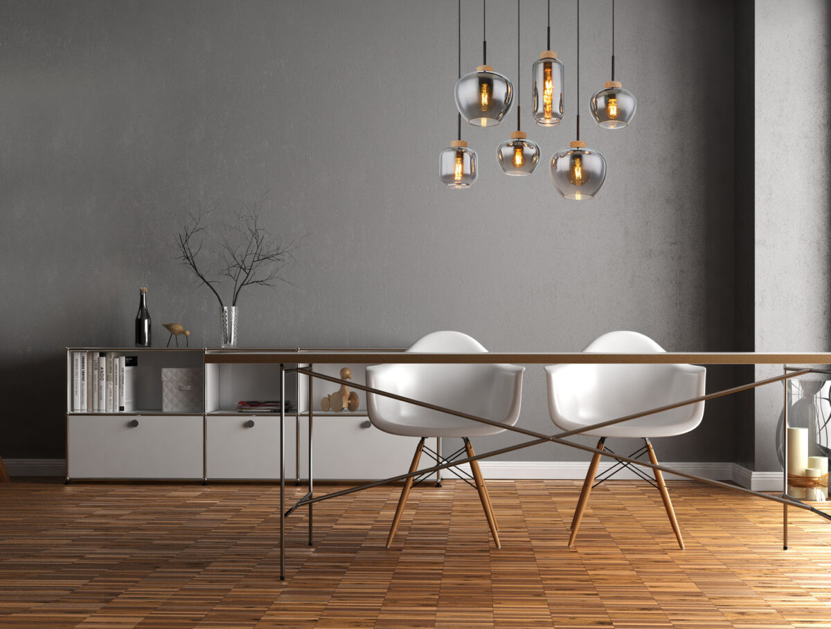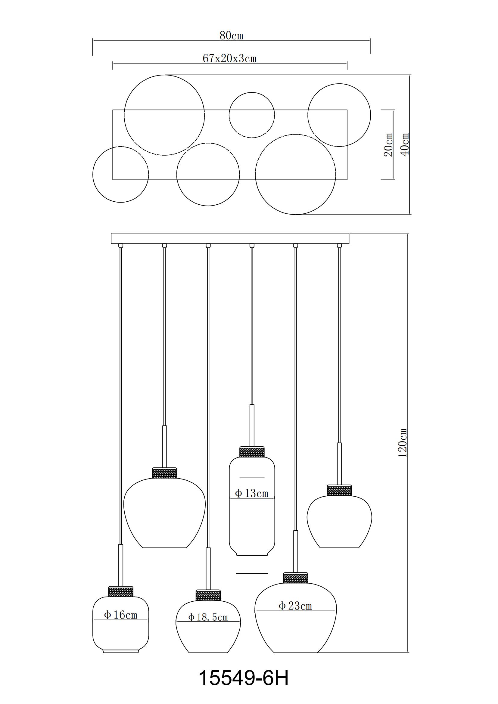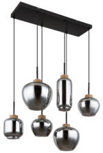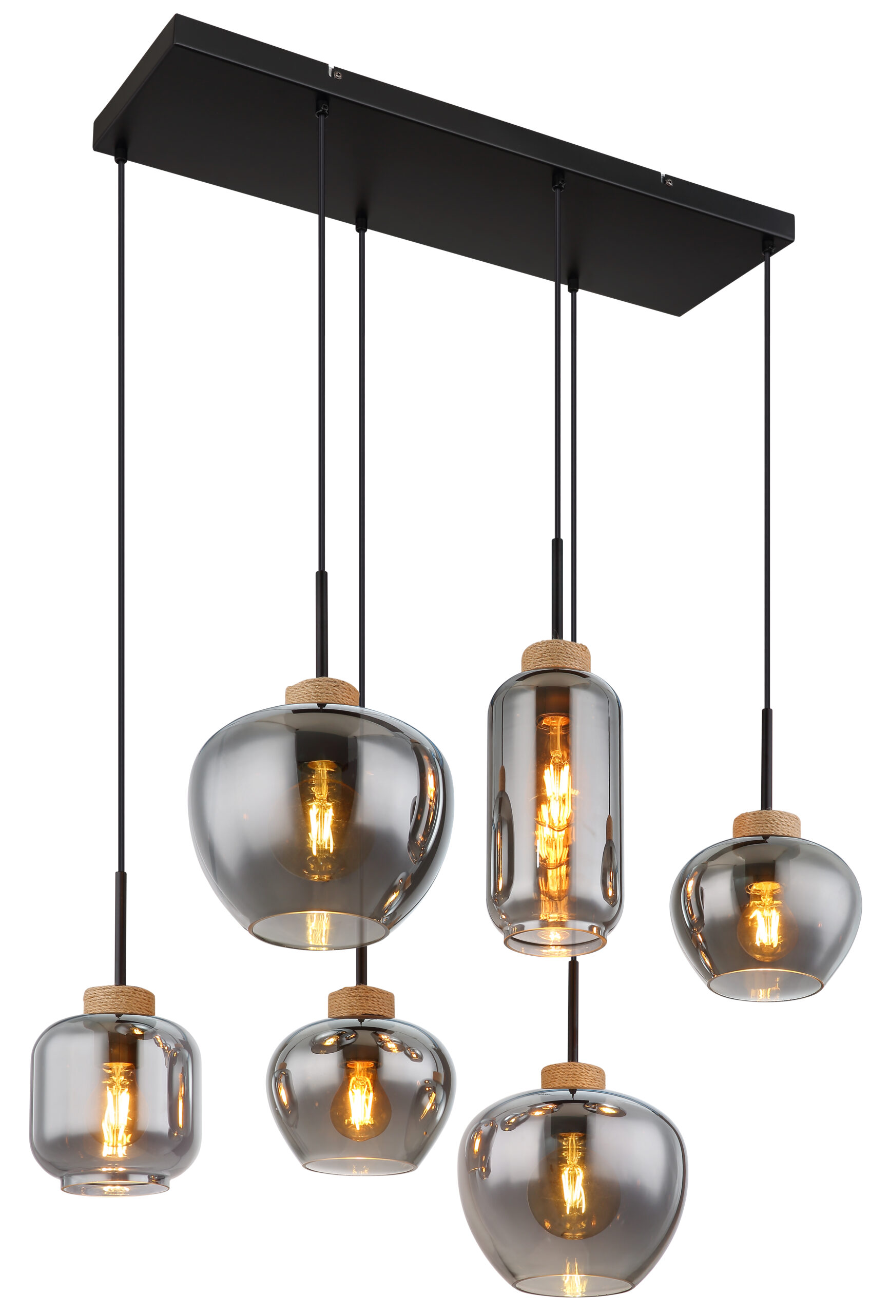 Ova prekrasna visilica iz serije MATT inspirira svojim sjajnim dizajnom i postaje središnja točka vašeg dnevnog boravka. Lampa se sastoji od 6 zadimljenih staklenih sjenila različitih oblika, od kojih svaki ima E27 grlo i visi do 1,2 m od plafona spojenog na 6 crnih kablova. E27 grla vam omogućavaju da koristite sijalice po vašem izboru, do maksimalne snage od 40 vati.