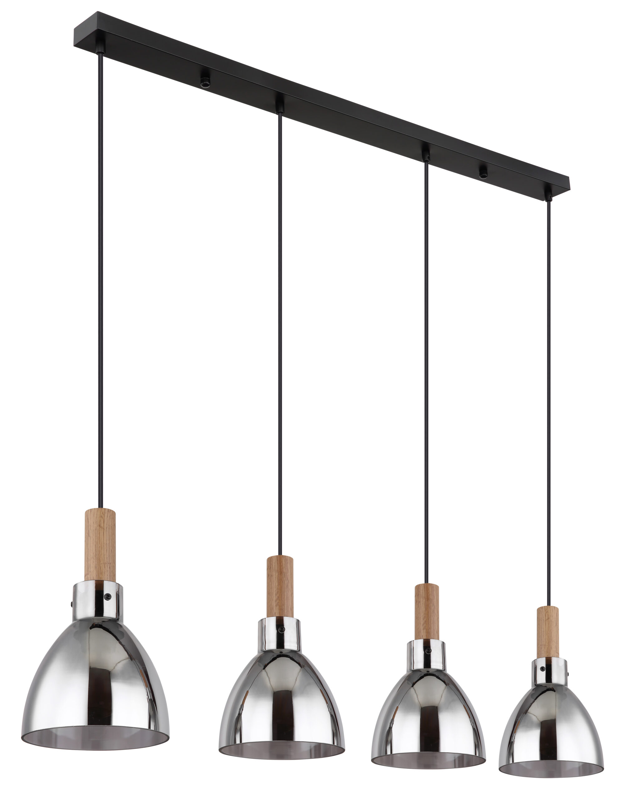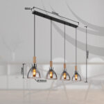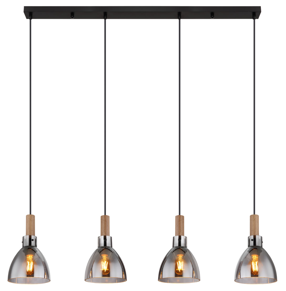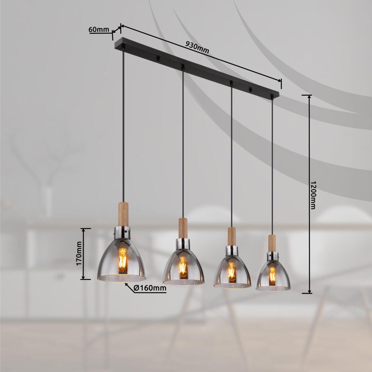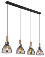 Ova prekrasna visilica inspirira odličnim dizajnom. Na plafonski priključak dužine 105 cm provucite četiri kabla dužine 1,2 m do svake E27 utičnice, koji su opremljeni zastakljenim zadimljenim staklom. E27 utičnica vam omogućava da sami odredite boju svjetla i svjetlinu do maksimalne snage od 6 vati. Zbog dugovečnosti i uštede energije preporučujemo LED sijalice.