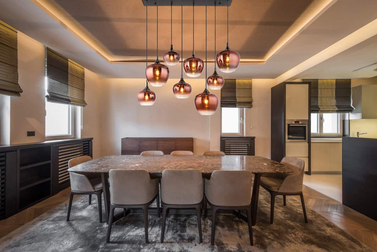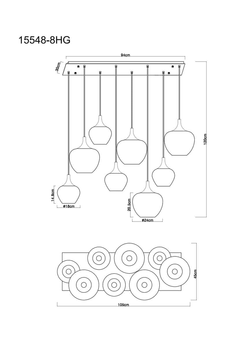 Elegantna viseća lampa MAXY predstavlja se u pravougaonom dizajnu sa osam visećih, lukovičastih čaša koje pružaju moderno i elegantno osvetljenje. Kućište je izrađeno od crnog mat i crnog hromiranog metala, što lampi daje plemenit izgled. Sjenila su izrađena od prozirnog gradijentnog stakla u prekrasnoj nijansi bakrene boje koja stvara ugodnu svjetlosnu atmosferu. Sa dužinom od 940 mm i širinom od 400 mm, viseća lampa pruža jako i ujednačeno svetlo koje optimalno osvetljava prostoriju. Viseće svetiljke MAXY kombinuju funkcionalnost sa atraktivnim dizajnom, čineći ih ne samo izvorom svetlosti, već i dekorativnim elementom u svakoj prostoriji. Svojim modernim izgledom i visokokvalitetnim materijalima dodaju elegantne akcente vašem interijeru.