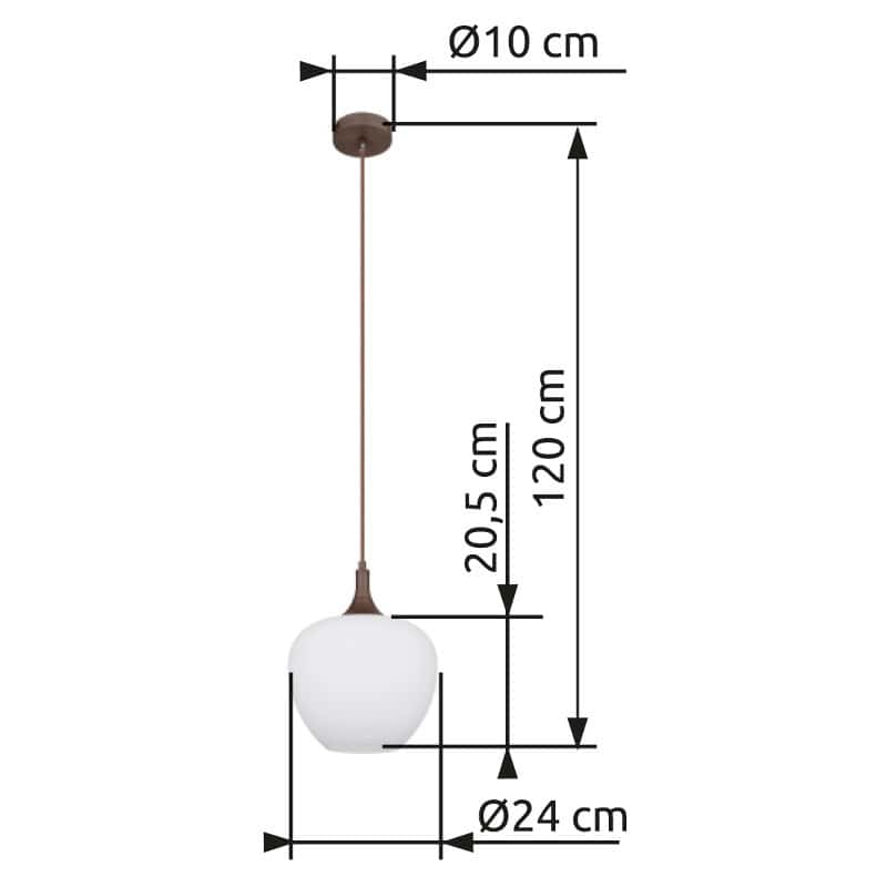 Neka vaše sobe zablistaju uz našu impresivnu viseću lampu MAXY. Metal u boji kafe i opal staklo spajaju se kako bi stvorili harmoničan dizajn koji odiše elegancijom. Smeđi tekstilni kabel savršeno nadopunjuje lampu i daje joj topli dodir. Sa prečnikom od 240 mm i visinom od 1200 mm, MAXY privlači poglede u svakoj prostoriji. E27 utičnica vam omogućava da sami odredite boju svjetla i svjetlinu do maksimalne snage od 60 vati. Unesite stil i svjetlinu u svoj dom uz MAXY viseću lampu i uživajte u atmosferi dobrodošlice koja vas poziva da ostanete.