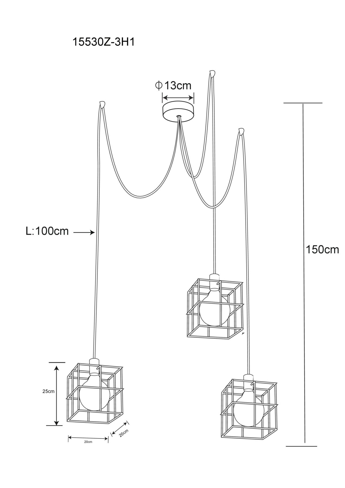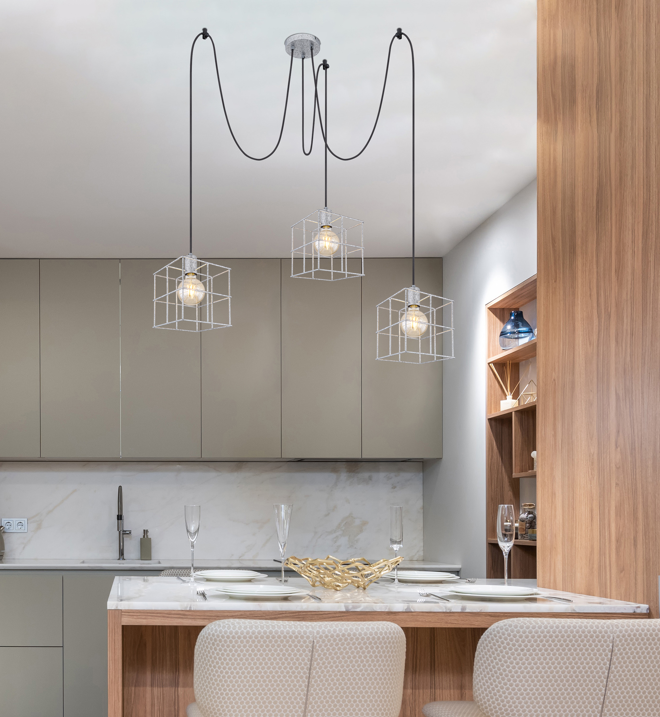 Ova viseća lampa iz serije Merril (ø 20 cm) uvjerava svojim elegantnim dizajnom od metala srebrne boje. Viseća lampa se sastoji od tri srebrna metalna rešetkasta sjenila, koja vise sa plafona zajedno sa E27 grlom na crnim kablovima. Visina viseće lampe može se podesiti pomoću kablova dužine 300 cm koji su pričvršćeni za nosače pričvršćene izvana na plafon. Dodatno, utičnice se mogu opremiti odgovarajućim lampama po vašem izboru, što vam daje mogućnost da individualno odredite boju svjetla i svjetlinu. Uz više artikala iz iste serije, možete upotpuniti cjelokupnu sliku vašeg interijera.