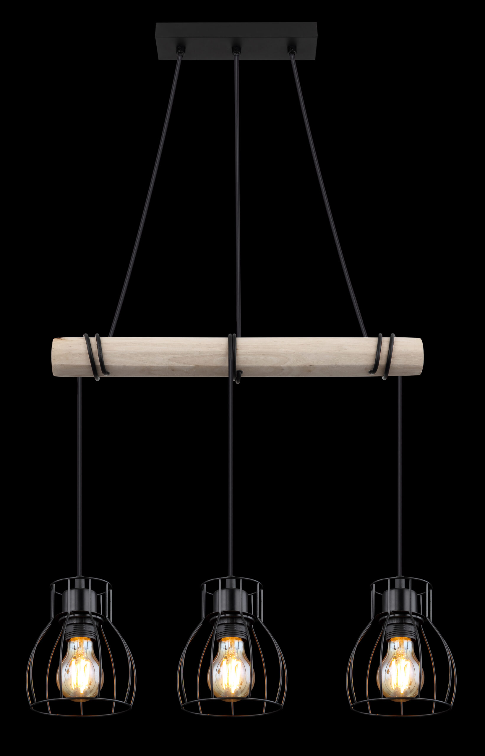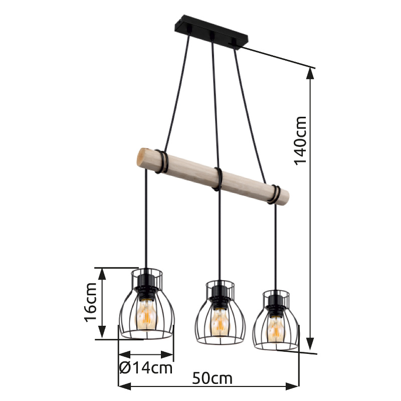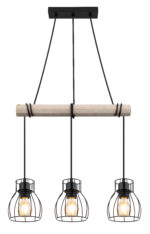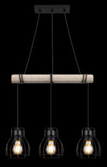 Ova viseća lampa iz serije Mina inspiriše sjajnom kombinacijom materijala drveta i metala. Tri crna kabla, namotana na drveni kovčeg, vode od plafonskog priključka do utičnice E27, svaki sa oblikovanom metalnom rešetkastom bojom. E27 utičnica vam omogućava da sami odredite boju i snagu svjetla do maksimalne snage od 40 vati. Zbog dugovečnosti i uštede energije, preporučujemo LED sijalice.