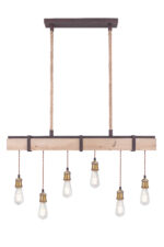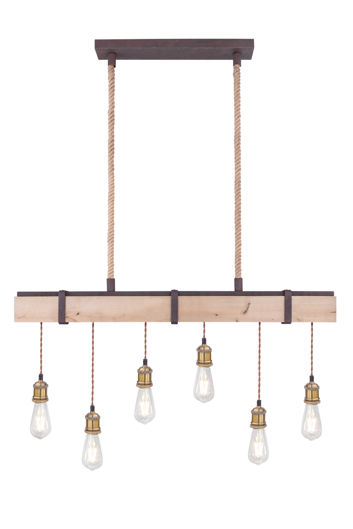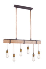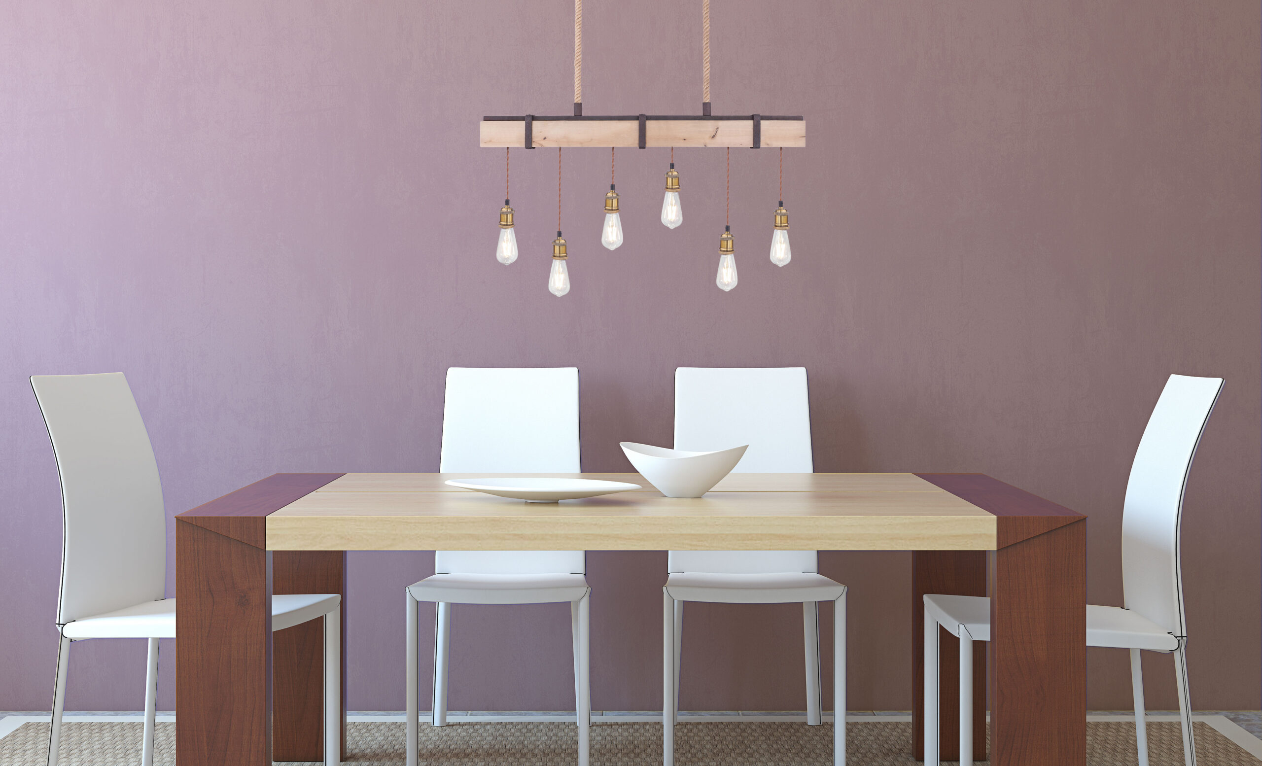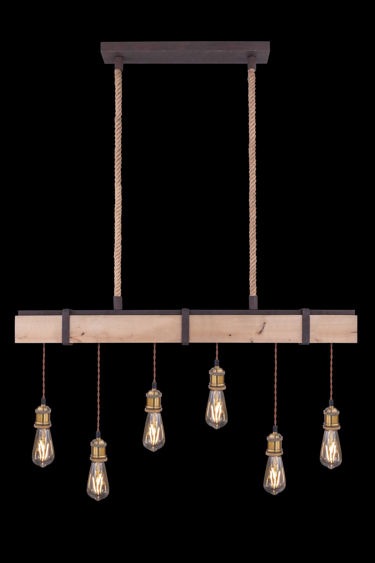 Viseća lampa muchA je poseban naglasak. S jedne strane metalom boje hrđe, u kombinaciji sa prirodnim drvetom, s druge strane slobodno visećim lampama bez abažura. 6 lampi vise na gredi i vire do 100 cm u prostoriju. Grlo E27 omogućava slobodan izbor sijalice do 60 vati. Zbog uštede energije i dugovečnosti preporučujemo LED lampe.
