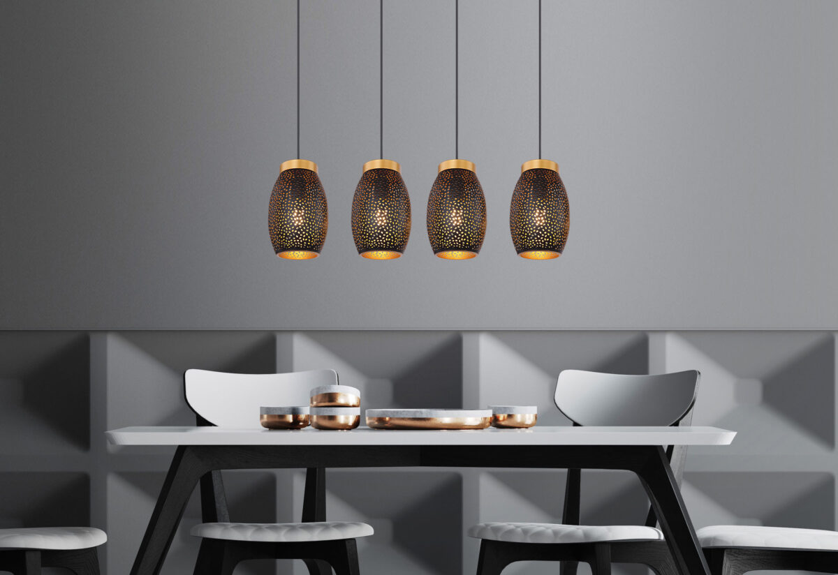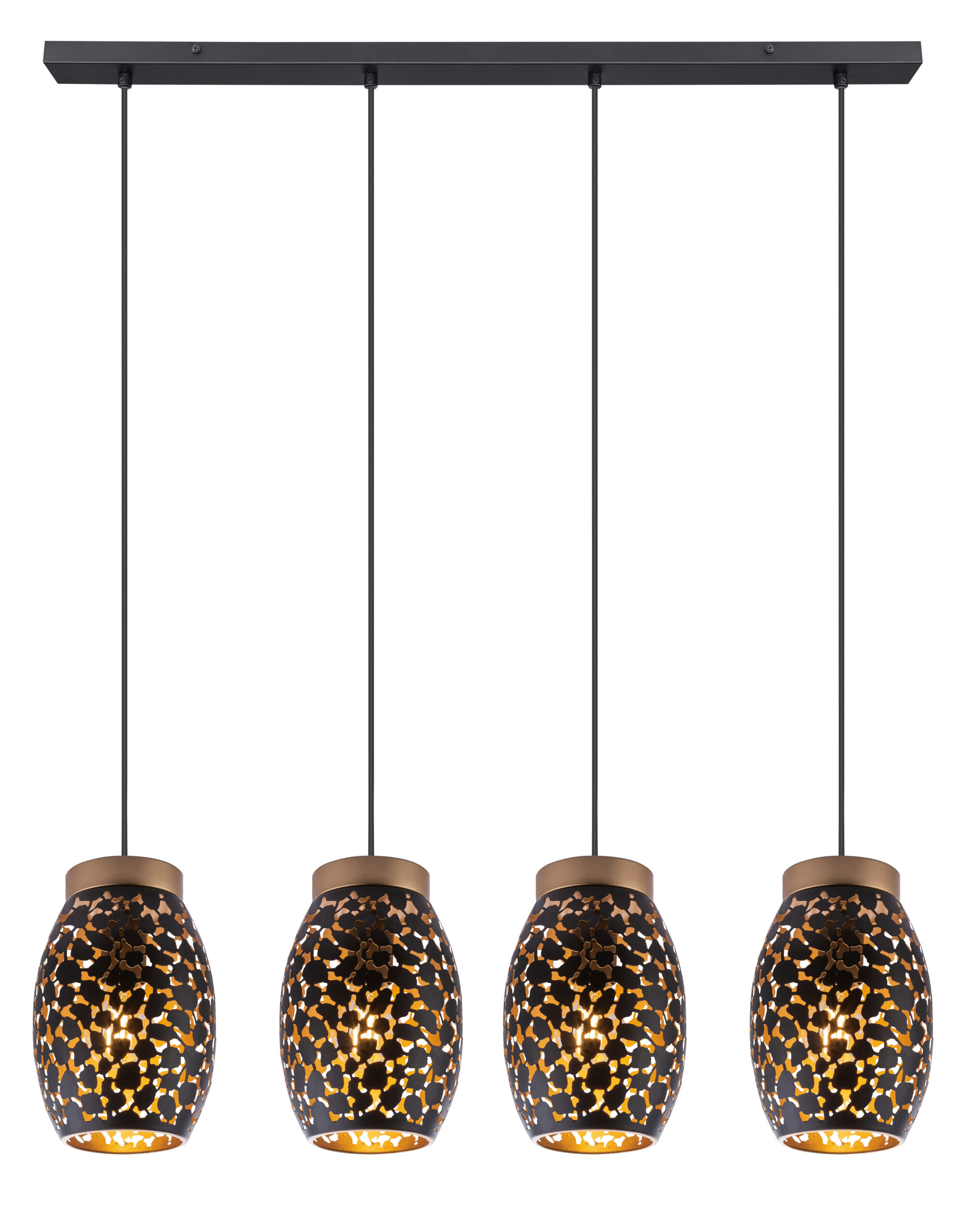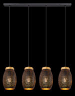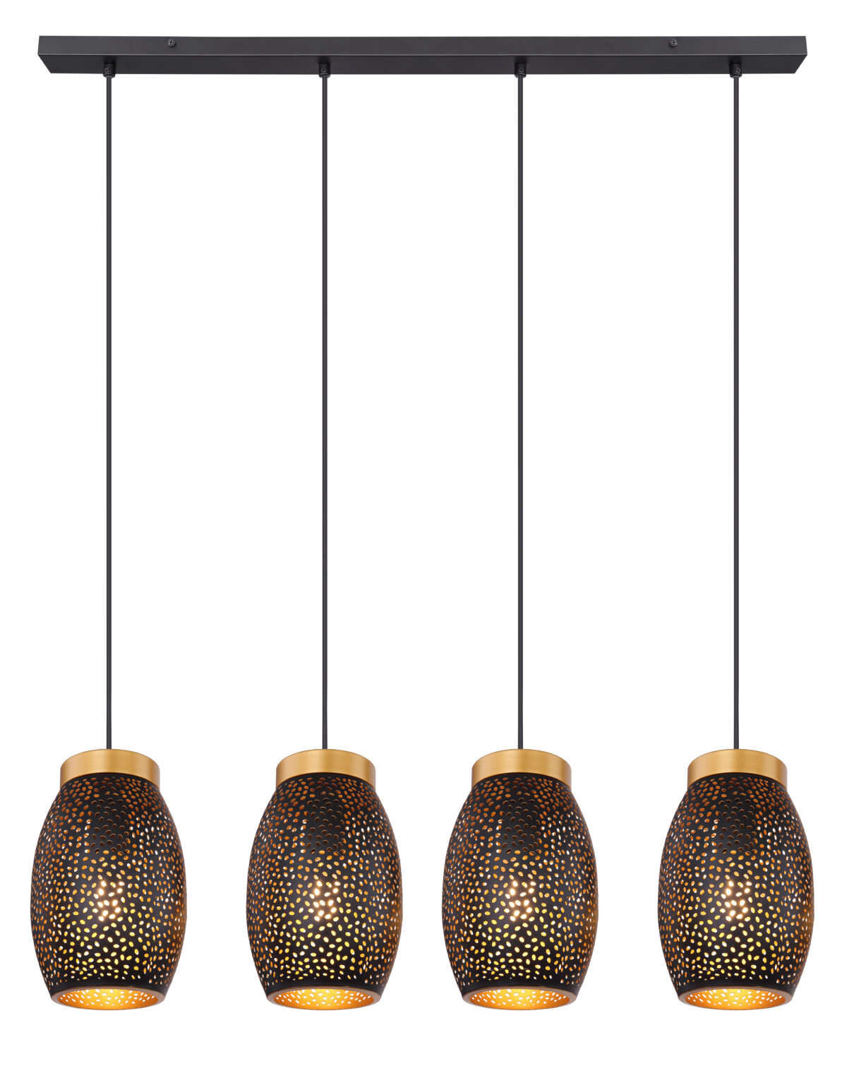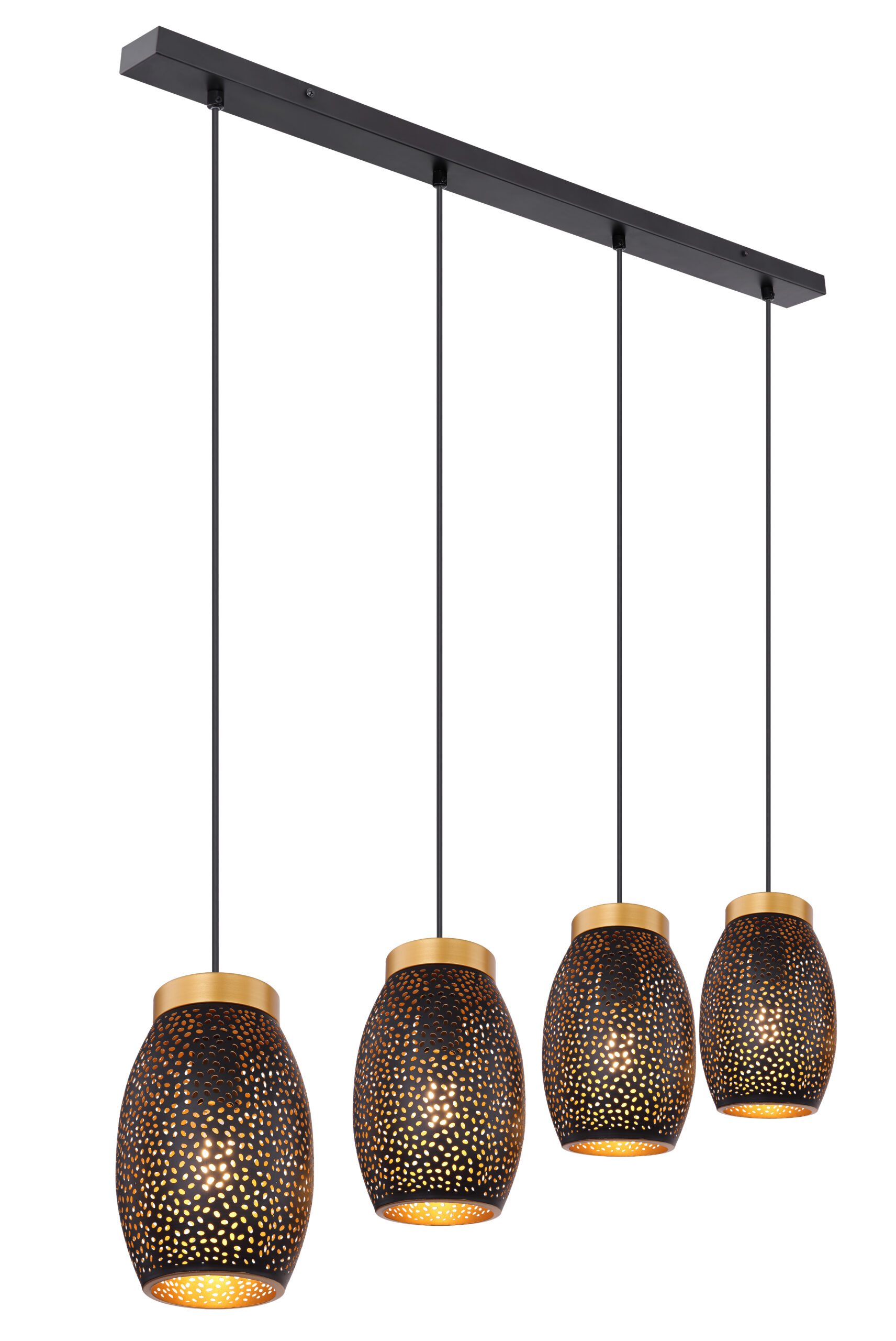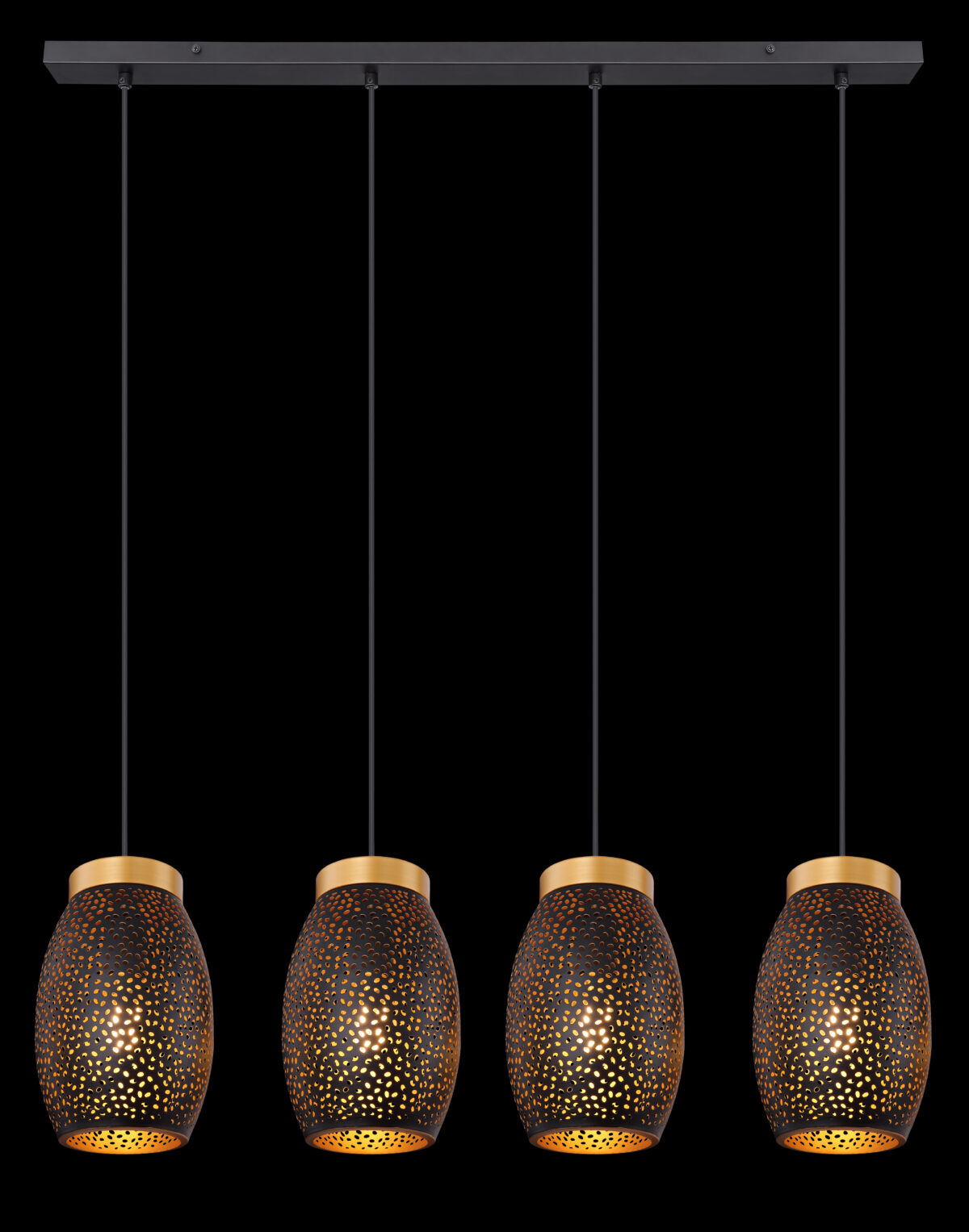 Velvet je trenutno potpuno u modi! Ova divna viseća lampa NARRI garantovano će očarati svaku sobu. Ova unutrašnja lampa viri 120 cm u prostoriju. Ova lampa ima 4 abažura sa ukrasnim udarcima, koji kroz zlatnu unutrašnjost stvaraju ugodnu klimu. Utičnica E14 vam omogućava da sami odredite izvor svjetlosti, a time i intenzitet svjetla i boju svjetla (4 x max.40W). Zbog uštede energije i dugovečnosti preporučujemo LED sijalice.