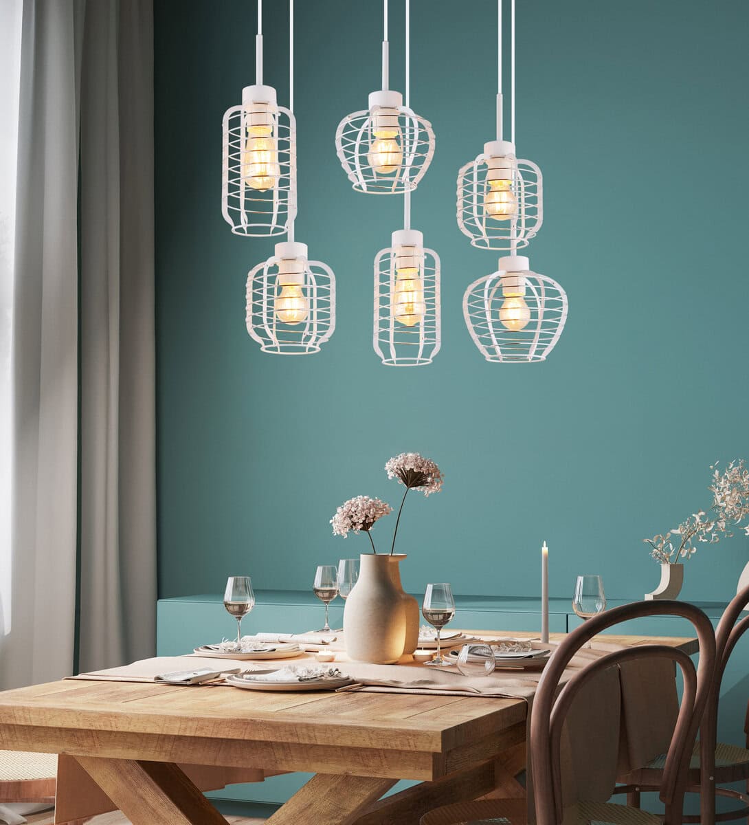 Viseća lampa NESA METALL WHITE impresionira svojim modernim, pravougaonim dizajnom i postavlja elegantne akcente u svaku prostoriju. Četiri različito oblikovane nijanse od finih metalnih šipki postavljene su na ravnu metalnu šinu u mat bijeloj boji, koje osiguravaju lagan, prozračan izgled. Hromirane aluminijumske šipke reflektuju svetlost i daju lampi elegantan, sjajan dodir. Kućište izrađeno od visokokvalitetnog, mat bijelog metala savršeno se uklapa u moderne, minimalističke koncepte življenja i može se kombinirati na mnogo načina. Sa šest E27 grla (osim sijalica), lampa nudi fleksibilnost u izboru izvora svjetlosti – idealno za ugodno i individualno osvjetljenje. NESA METALL WHITE je idealan za trpezarije, kuhinje ili dnevne sobe i stvara prijatnu atmosferu. Kombinacija finog metala, jasnih linija i elegantnih detalja čini ovaj privjesak pravim dizajnerskim vrhuncem. Savršen komad za sve koji cijene moderno svjetlo sa karakterom.