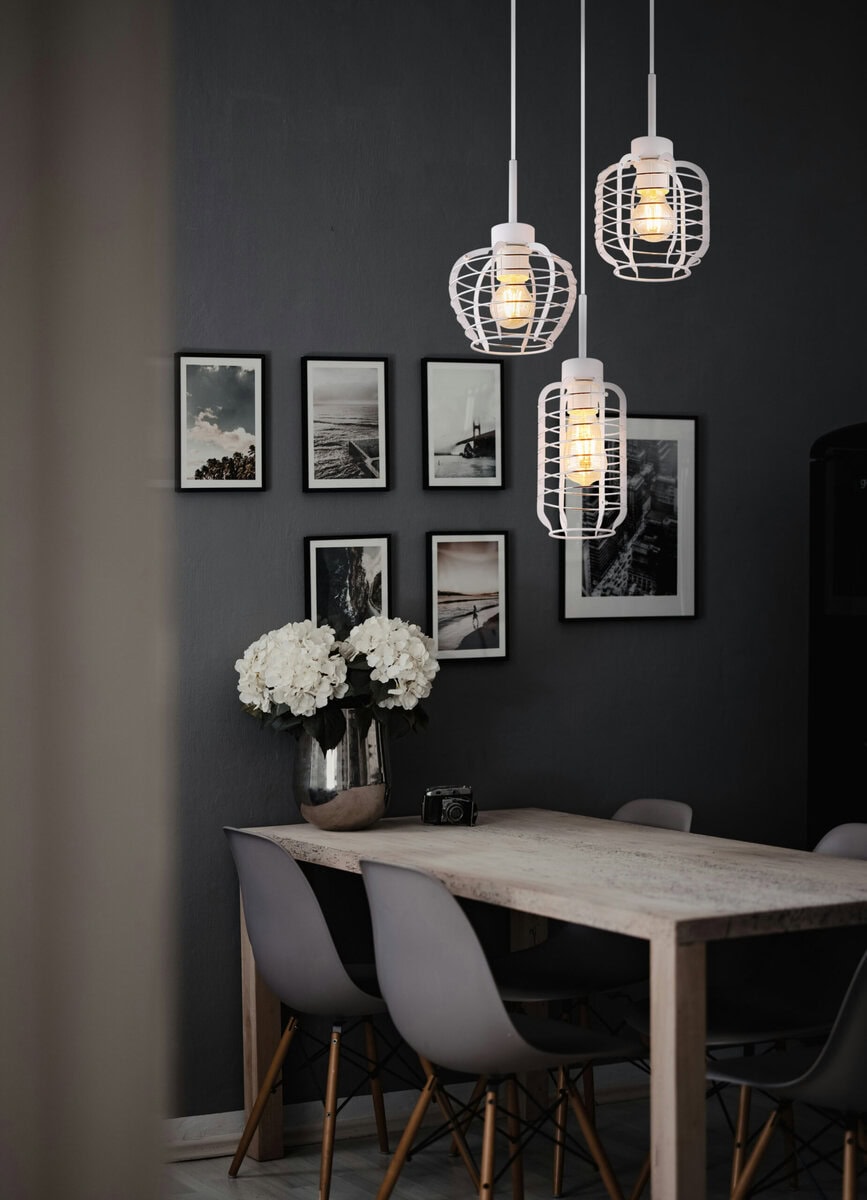 Viseća lampa NESA METALL WHITE impresionira svojim modernim izgledom i kreativnim dizajnom. Tri različito oblikovana sjenila od bijelih, mat metalnih podupirača daju lampi posebnu lakoću i osiguravaju uzbudljivu igru svjetla i sjene. Kromirane aluminijske šipke dodaju elegantne akcente i reflektiraju svjetlost na moderan način. Tijelo izrađeno od mat bijelog metala skladno se uklapa u suvremene stilove opremanja – bilo da je to minimalistički, skandinavski ili urbani. Zahvaljujući tri E27 grla (osim sijalica), svjetlosni efekat se može individualno podesiti. Svjetiljka je idealna za blagovaonicu, kuhinju ili iznad stolića za kavu i tamo postaje ukrasni vrhunac. Kombinacija finog metala, stilskih oblika i visokokvalitetne izrade čini NESA METALL WHITE idealnim izborom za sve koji cijene moderan dizajn i suptilnu eleganciju. Prava privlačnost za sobe sa stilom.