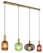 Ova viseća lampa iz serije Normy (115×30 cm) je prekrasan dodatak vašem interijeru. Sastoji se od metalne ploče boje mesinga na koju su pomoću crnih kablova pričvršćena četiri staklena ekrana različitih oblika i boja. Možete ih opremiti sa E27 sijalicama po vašem izboru, što vam daje mogućnost da individualno odredite boju svjetla i svjetlinu. Osim toga, visina viseće lampe može se podesiti do 120 cm tokom ugradnje. Uz više članaka iz iste serije možete upotpuniti cjelokupnu sliku u svoja četiri zida.