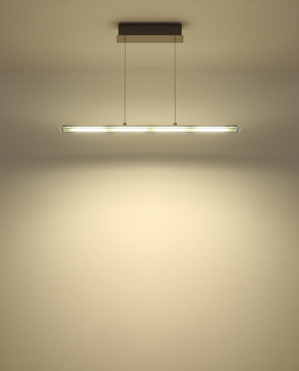 Viseća lampa NOVAK kombinuje moderan, linearan dizajn sa inovativnom funkcionalnošću, dodajući stilske akcente iznad trpezarijskih stolova, radnih ili dnevnih prostora. Pravougaona greda od mat metala nikla odiše visokokvalitetnom elegancijom, dok sjenilo od prozirnog i mat stakla ravnomjerno raspoređuje svjetlost, stvarajući ugodnu atmosferu bez odsjaja. Svetlo je podesivo po visini, što omogućava optimalno prilagođavanje različitim visinama plafona ili veličinama stola. Dimenzija D: 880 mm, Š: 90 mm, NOVAK viseća lampa nudi upečatljiv, ali elegantan izgled. Integrisana LED daje 1300 lumena sa podesivom temperaturom boje od 3000 K do 6500 K, koja se može prigušiti preko beskonačnog dimera na dodir. Boje se mogu fiksirati, a memorijska funkcija pohranjuje željenu postavku osvjetljenja. Zahvaljujući vrhunskim materijalima, modernom dizajnu i inteligentnoj tehnologiji rasvjete, NOVAK visilica je savršena za one koji traže skladnu kombinaciju stila, fleksibilnosti i funkcionalnosti.
