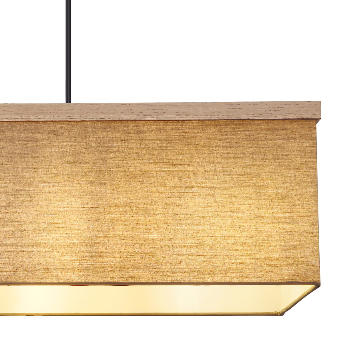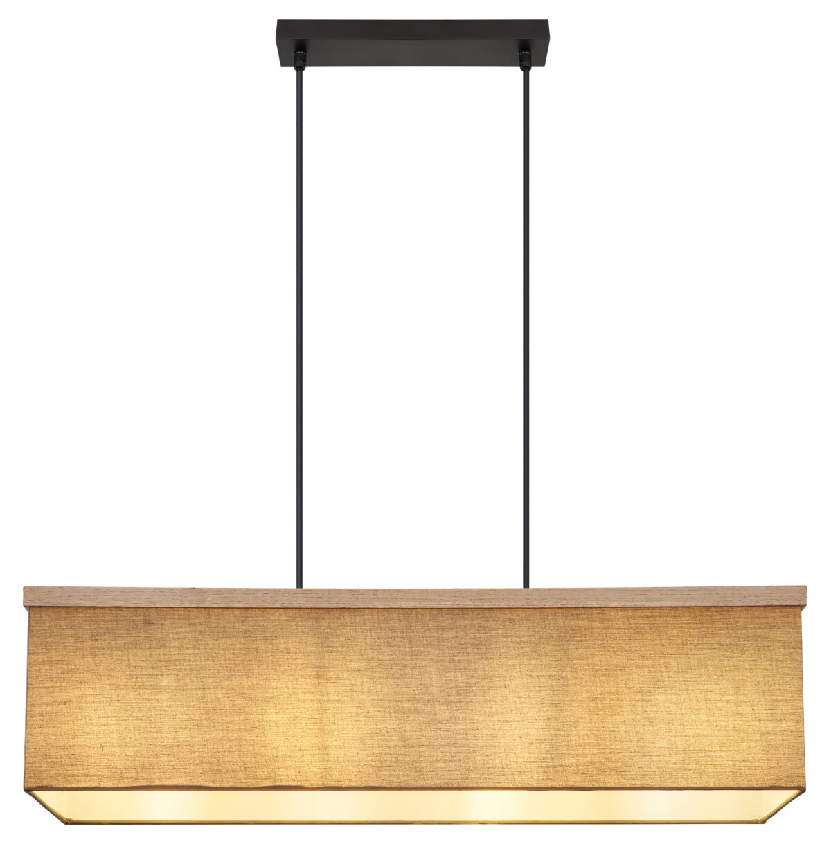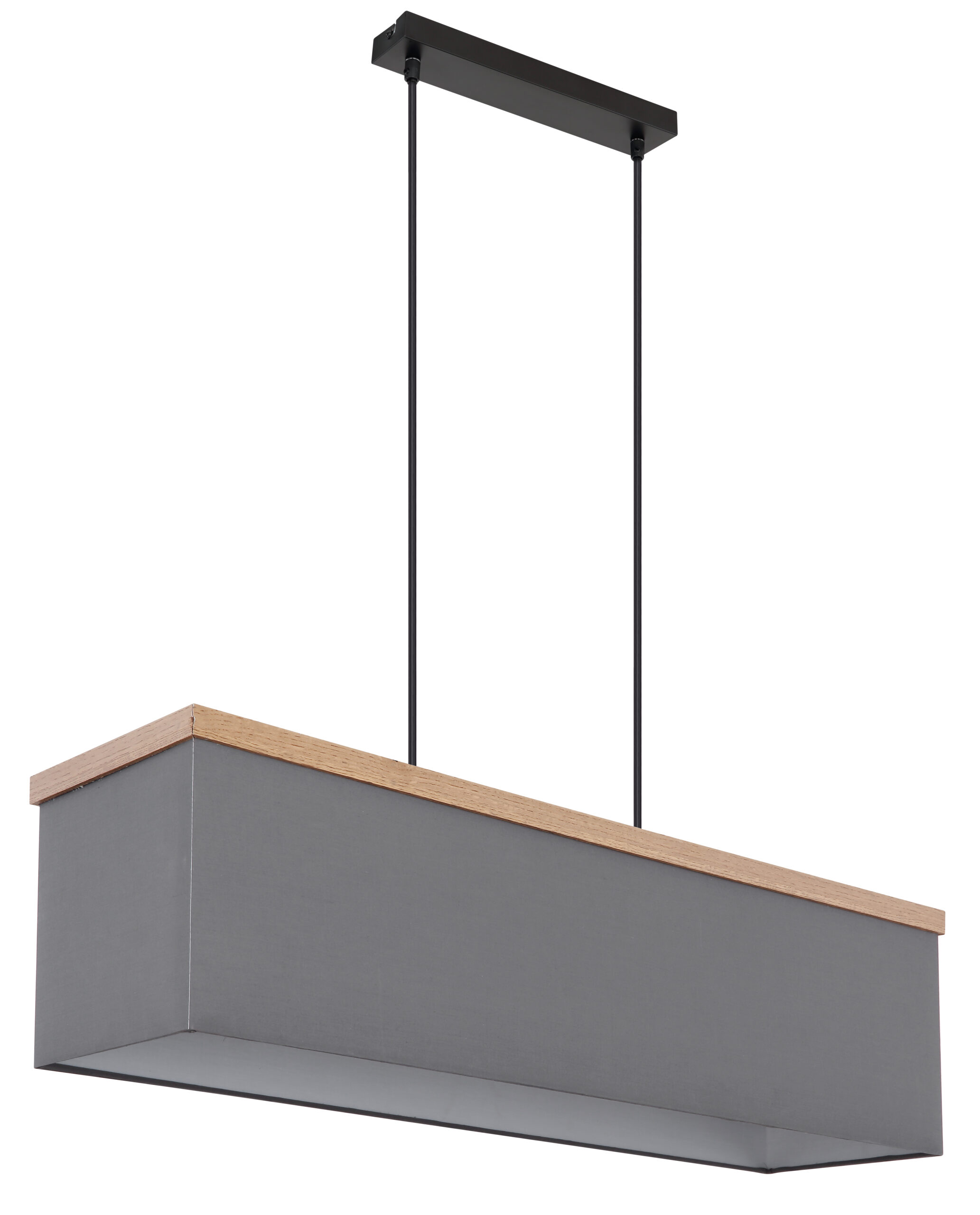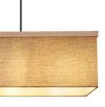 Ova prekrasna viseća lampa inspirira odličnim dizajnom. Iz uskog crnog plafonskog zatvarača, dvije crne mat metalne šipke do dužine 1,2m strše u pravokutnu tekstilnu nijansu u boji antracit. (80x20cm). Opremljen je sa dve E27 LED utičnice i omogućava vam da sami odredite boju svetla i osvetljenost do maksimalne snage od 9W. Sa ostalim modelima ove serije možete savršeno upotpuniti svoj dnevni boravak. Zbog dugovečnosti i uštede energije preporučujemo LED sijalice.
